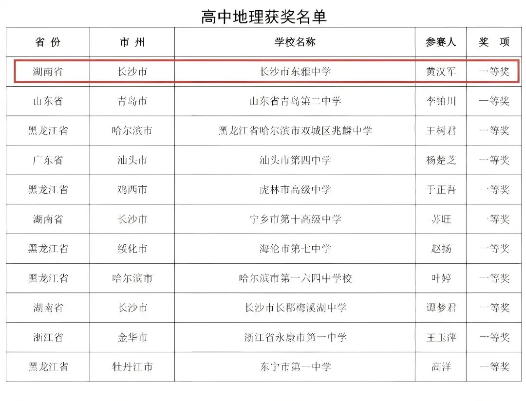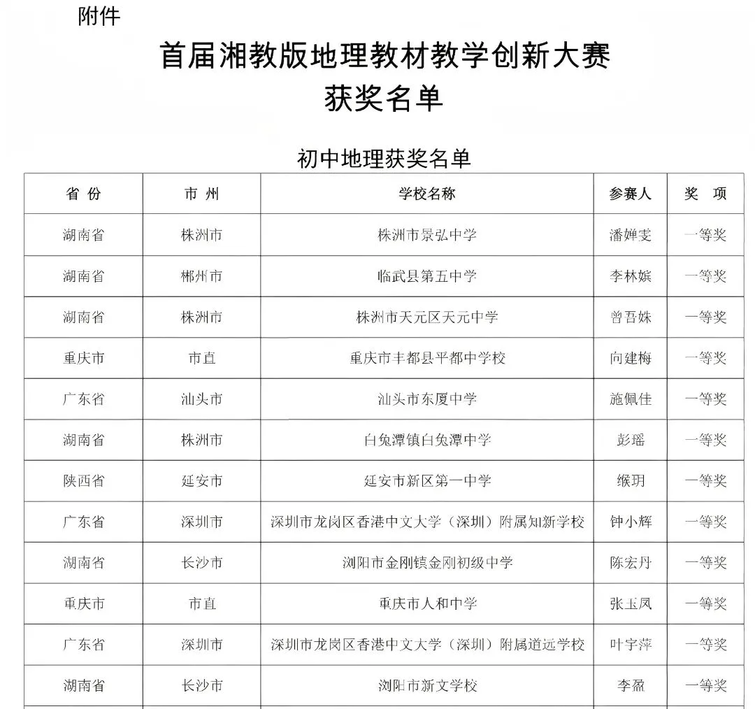 喜报 | 长沙市东雅中学黄汉军荣获首届湘教版地理教材教学创新大赛一等奖
