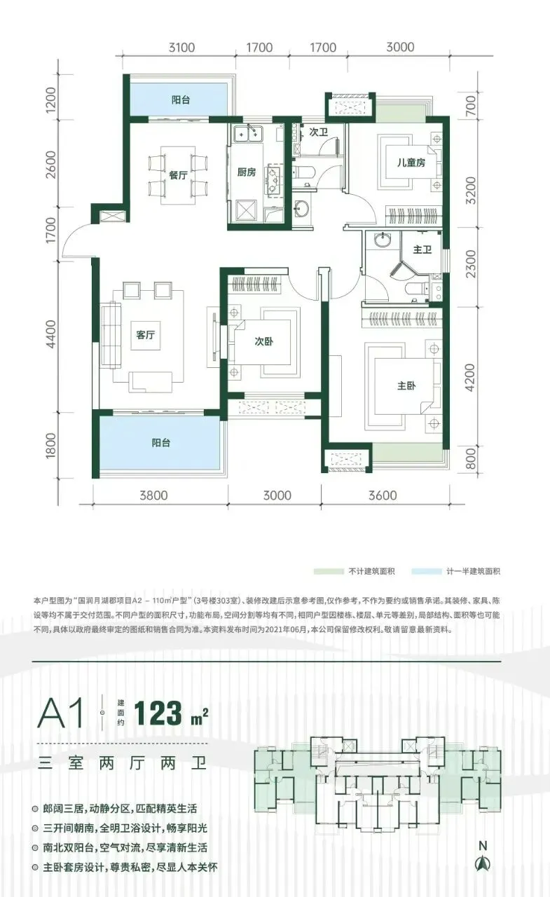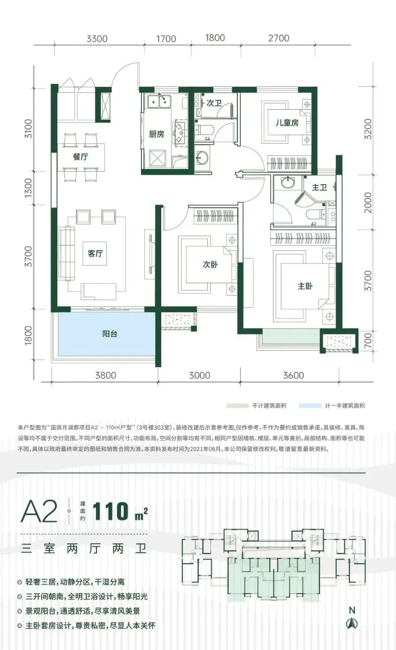 ①市面满分户型,110平三房两厅两卫