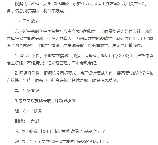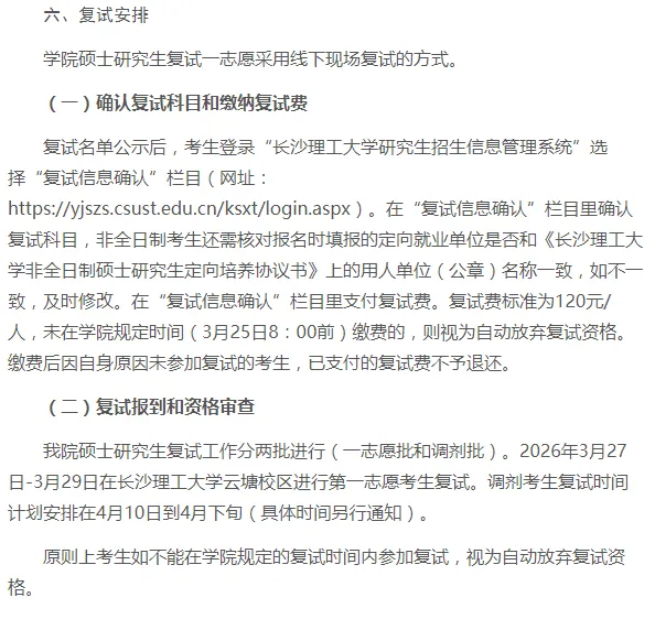 (1)基本要求同《长沙理工大学2026年硕士研究生招生复试录取方案》。
