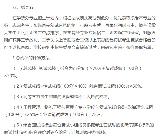 (2)对于同一批次申请我校同一专业、初试科目完全相同的调剂考生(考生一志愿为同一院校同一专业,考试科目完全一致),在符合学院选拔条件的情况下,由学院按考生初试成绩择优遴选。