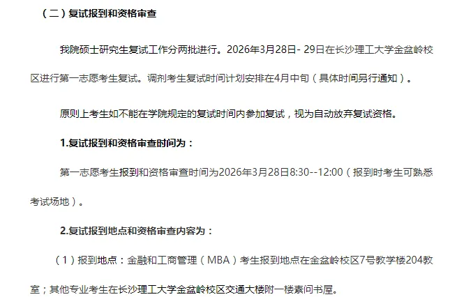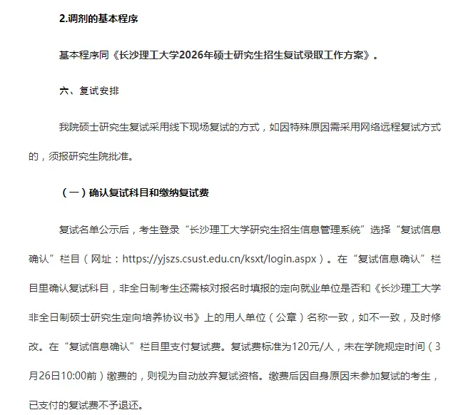 (1)基本要求同《长沙理工大学2026年硕士研究生招生复试录取方案》。