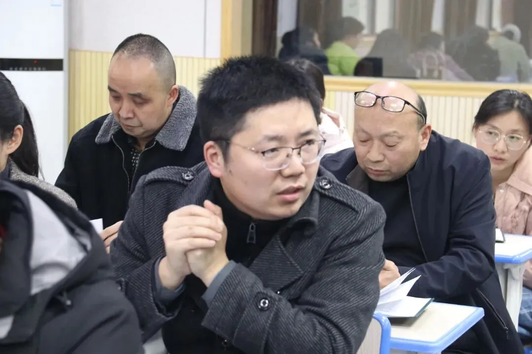 课后研讨环节由教研处副主任郭愿旺主持,他先向在场教师介绍了杨老师的简历和教育教学成就,并代表学校对三位老师远道而来的鼎力支持表达诚挚感谢。