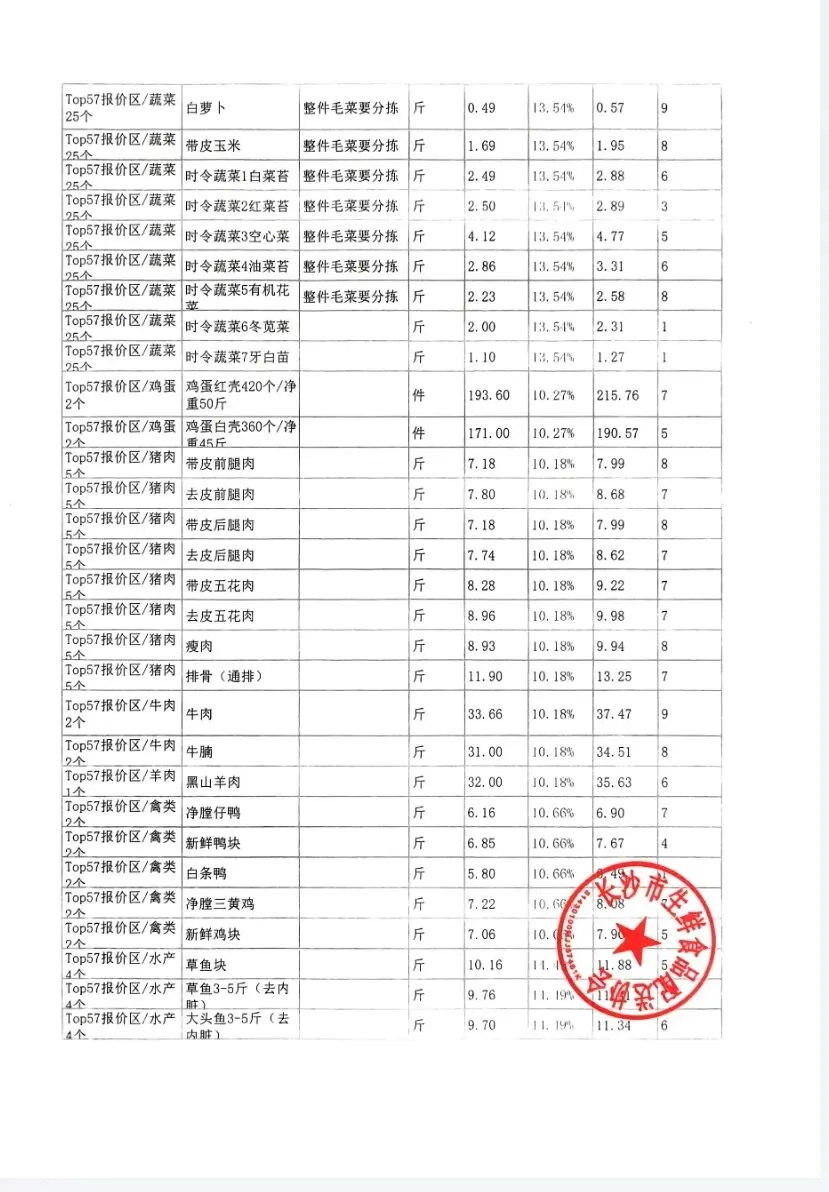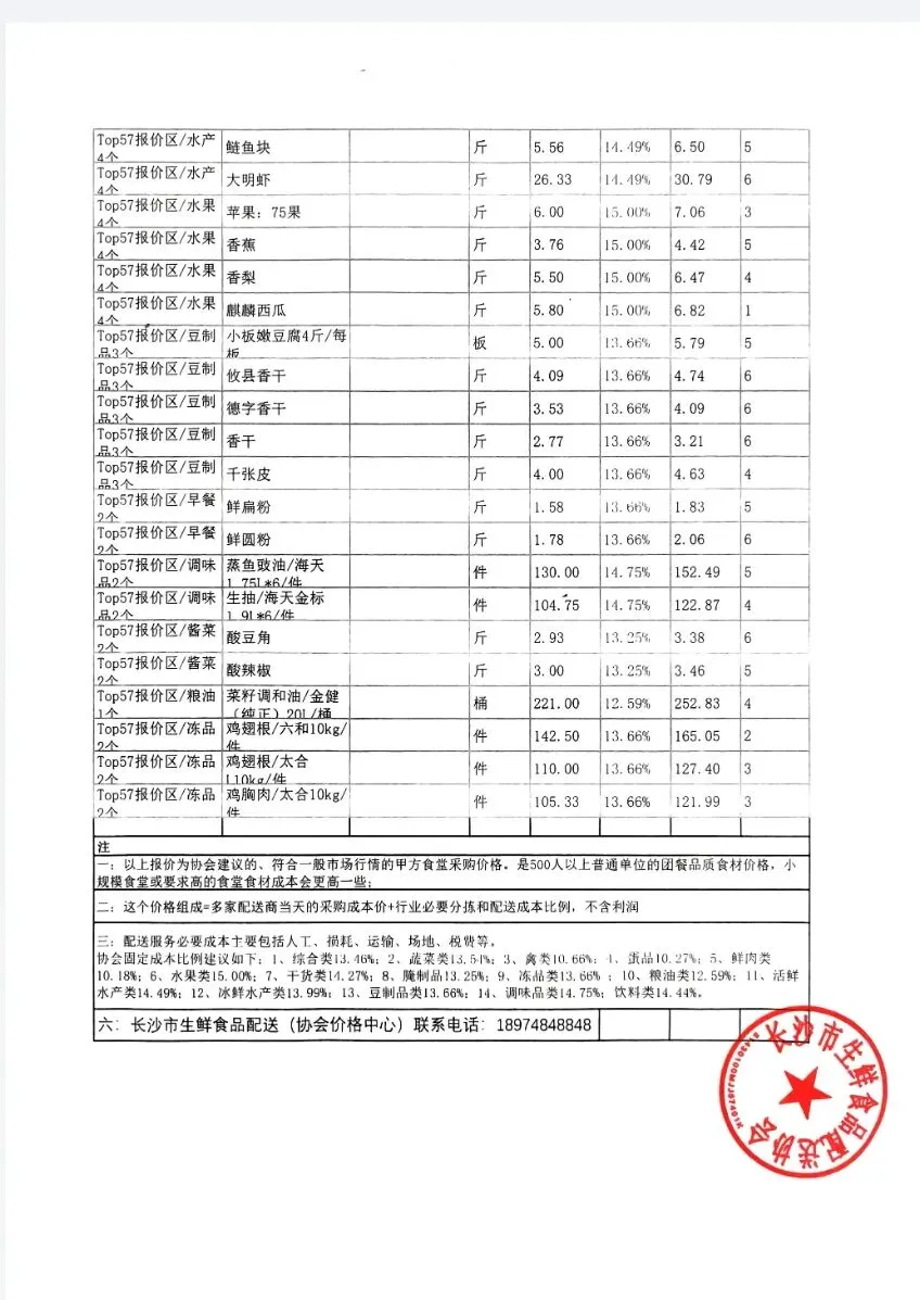 >长沙市生鲜食品配送协会第二十六期直接采购成本与含费综合成本行情 参考| 3月24日 周二 周报