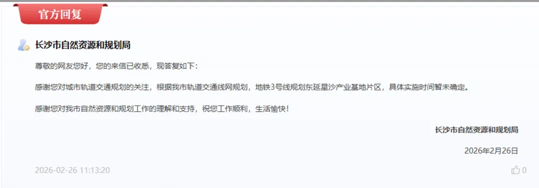 地铁延长线的最新答复