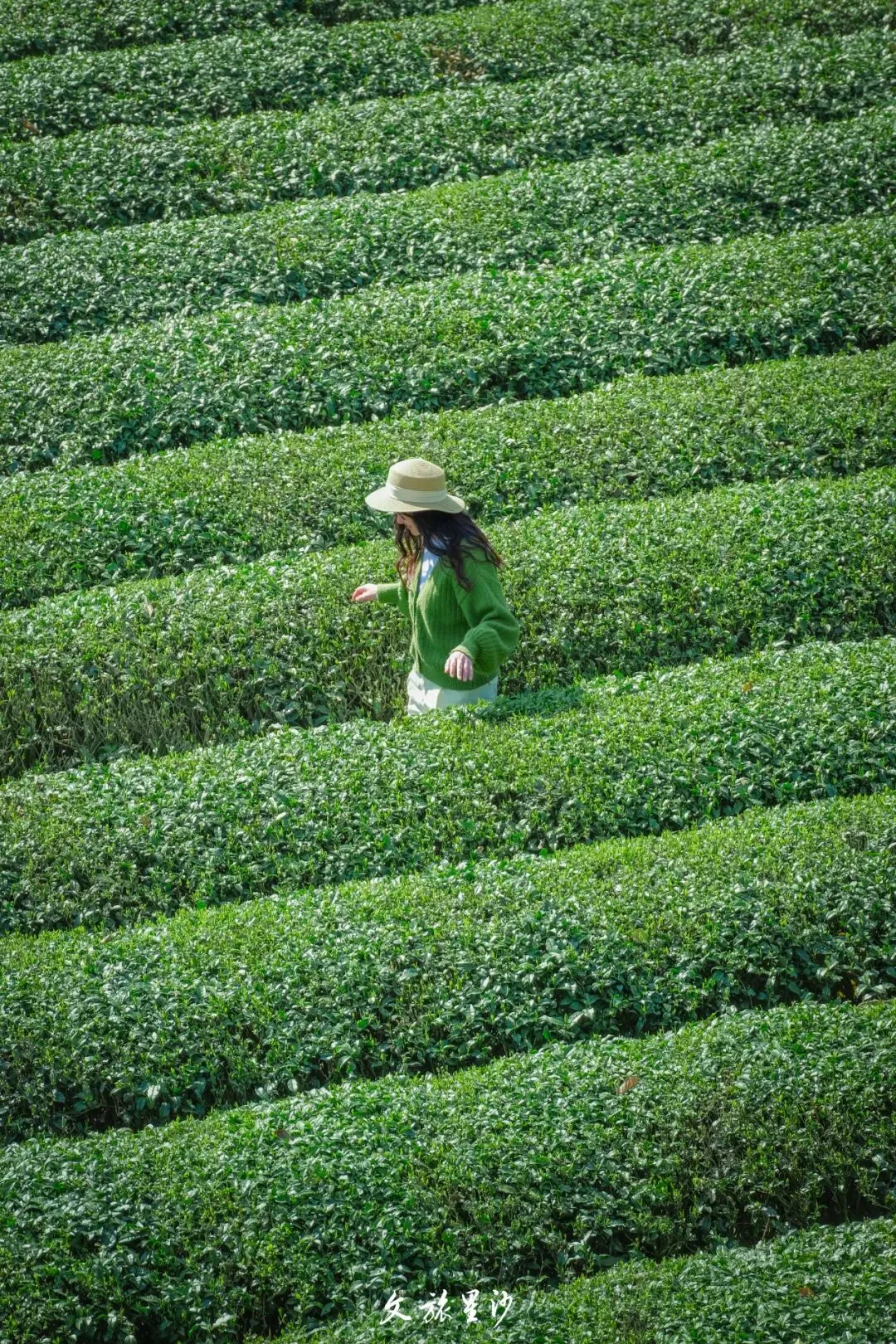 一垄一垄的茶树,像用尺子量过。站在露台上望过去,满眼的绿,铺得整整齐齐。
