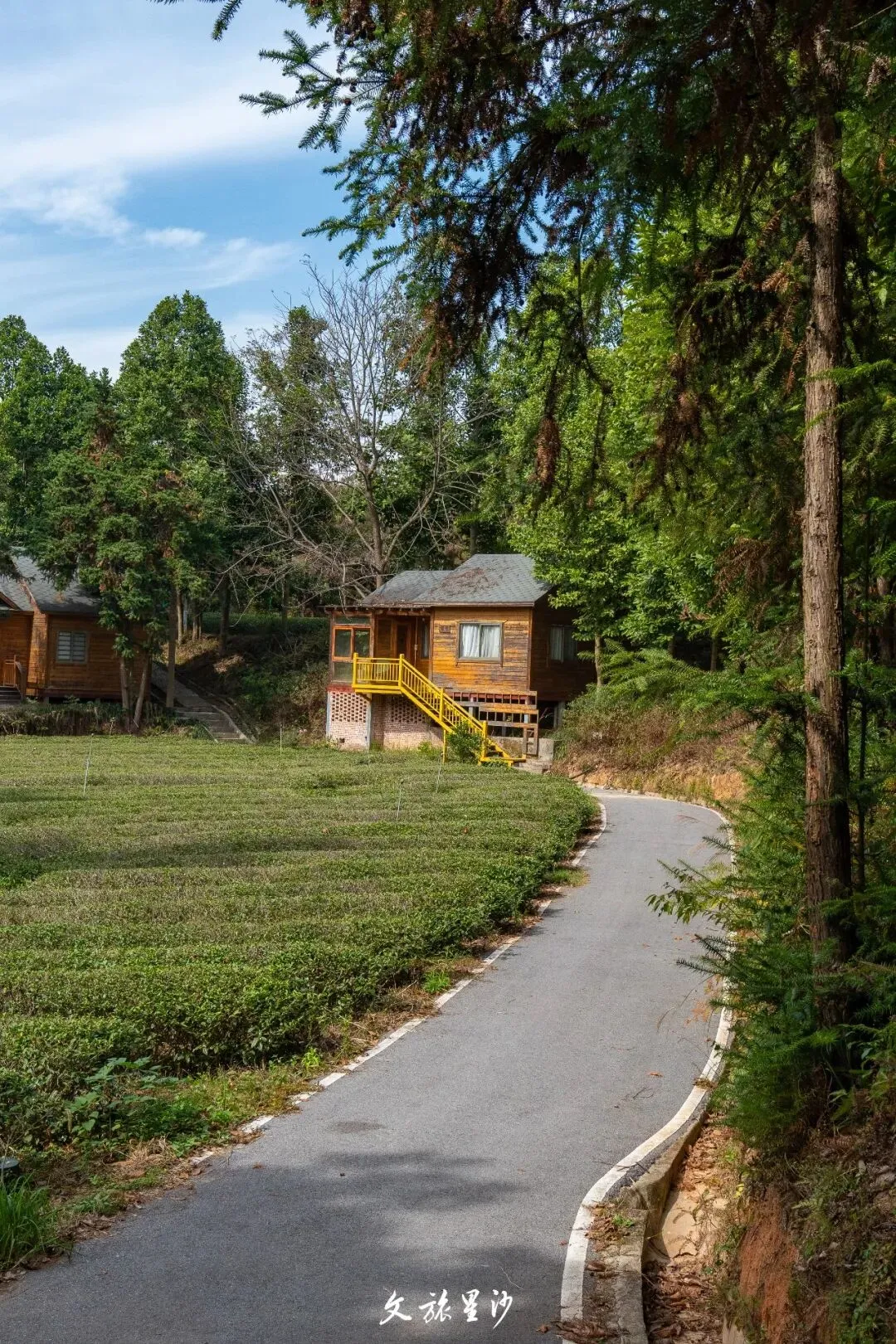进去是平平坦坦的柏油路,最适合和朋友一起骑车。骑着车穿过茶园,茶香扑过来,一阵一阵的。