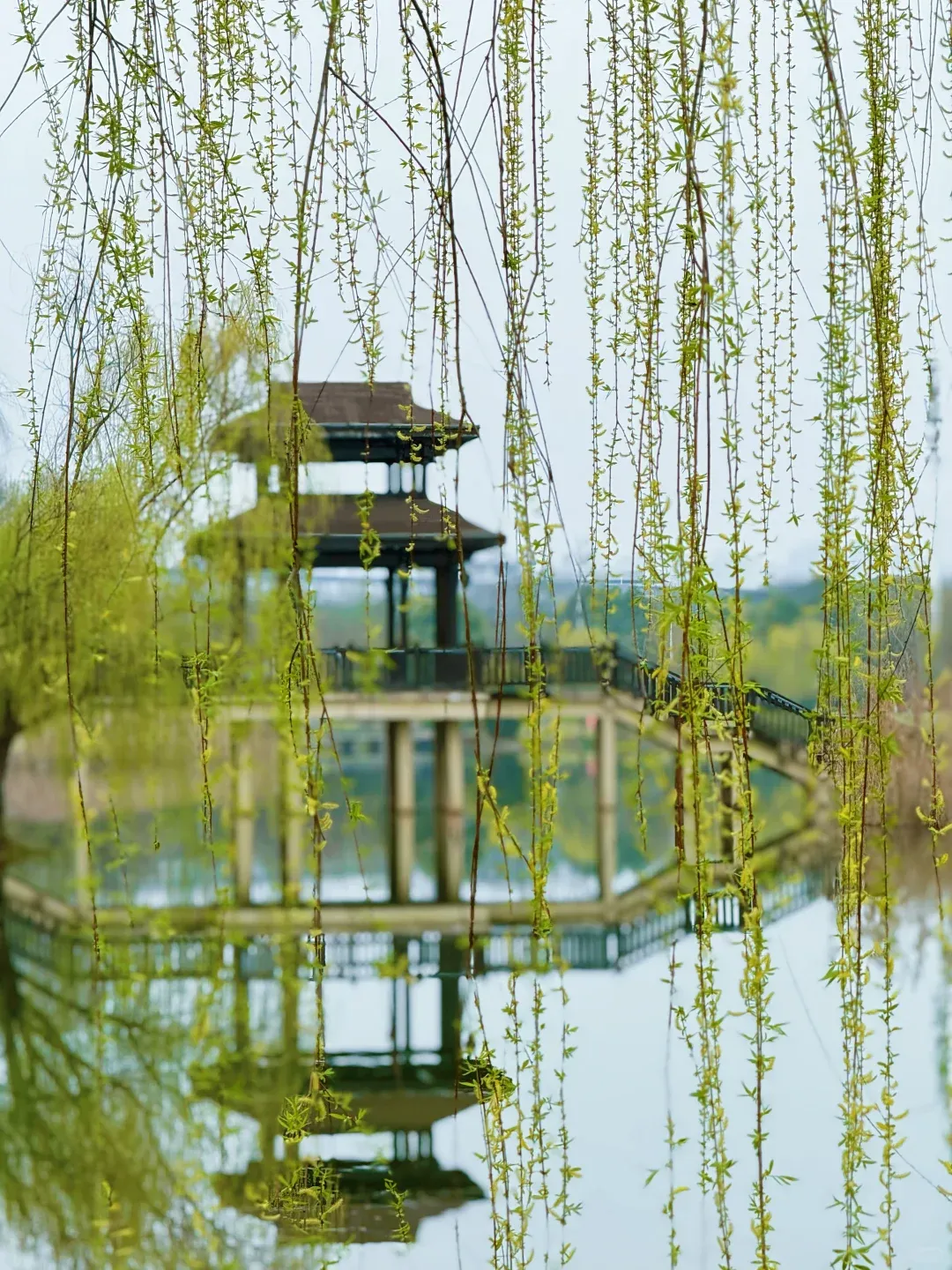 垂柳映着波光粼粼的湖面,繁花藏在绿意之间,烟雨朦胧的氛围感拉满,哪怕是手机直出,都不用加滤镜,随便拍都好看。