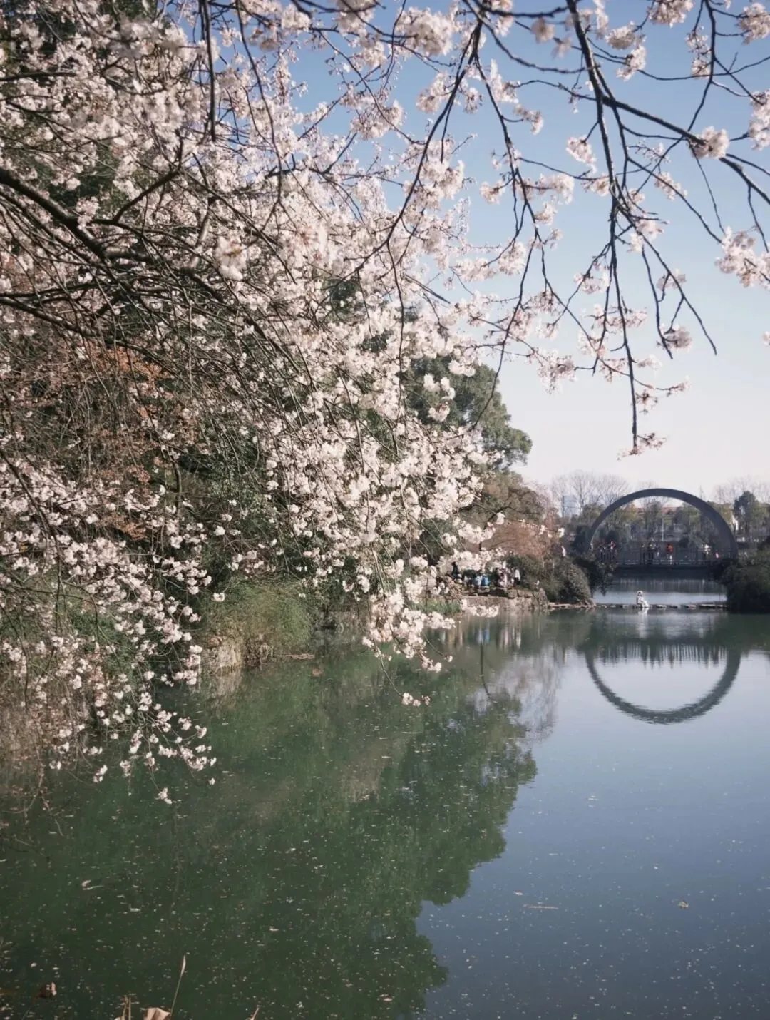 望月桥、古亭台和周边的西汉王陵古迹,为樱花增添了浓浓的古韵味。不管是环湖散步,还是蹲在湖边拍花,随手一拍都是江南古风大片,亲子游、闺蜜游都很合适。