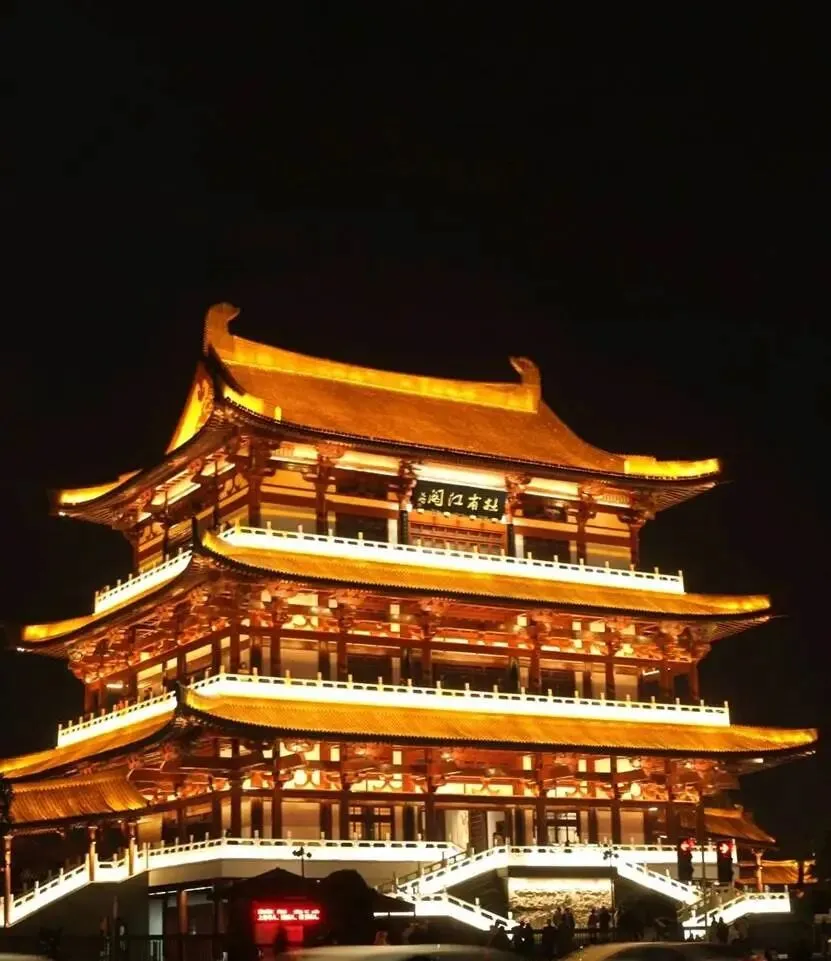 为纪念杜甫建的仿唐阁楼,登阁能看湘江和橘子洲全景。晚上亮灯后,拍照巨有氛围感,周边能租汉服,拍古风大片超合适。