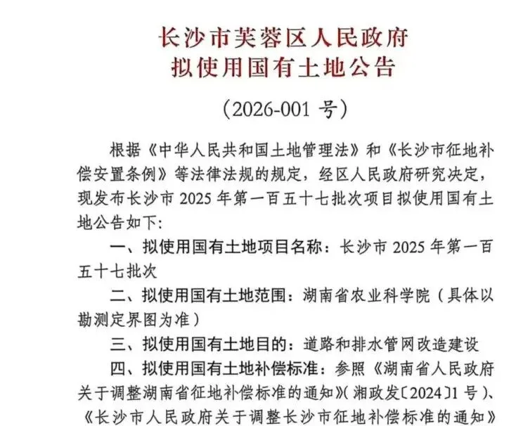 芙蓉区的征收范围为湖南省农科院片区,土地将用于道路建设和排水管网改造,进一步完善老城区的基础设施配套。