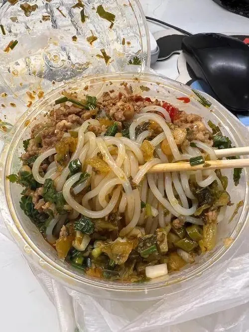 早上,别去排粉店长队。挑家本地人坐得多的摊子。米粉汤头轻,带点酸鲜,有时还放芝麻油。粉面都细,入口顺,汤底一口入胃,人就醒了。