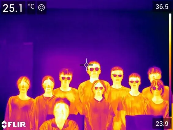 七月九日下午由熊舟师傅向大家讲解有关带电检测的基本概念及原理。在老师举起红外测温仪向大家介绍并展示后,实践团成员纷纷表示想要用这台红外测温仪拍照。实践团成员小心翼翼地从老师手中接过价值二十万的红外测温仪,对着周围的同学“咔嚓”一声,一张红外图就拍好了!