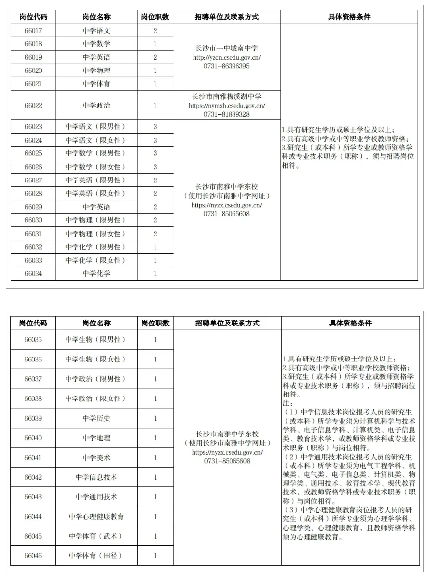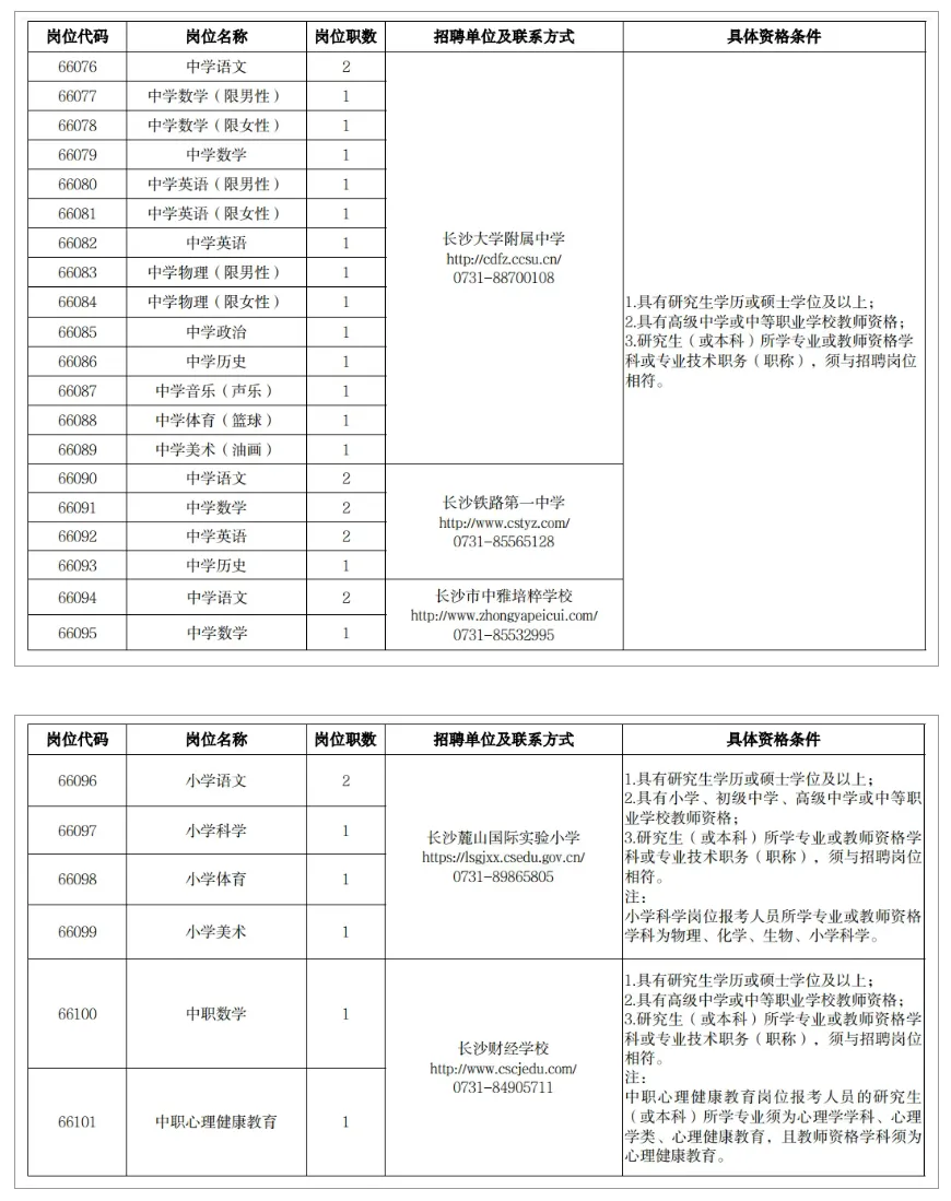 长沙市教育局人事处:0731-84899737