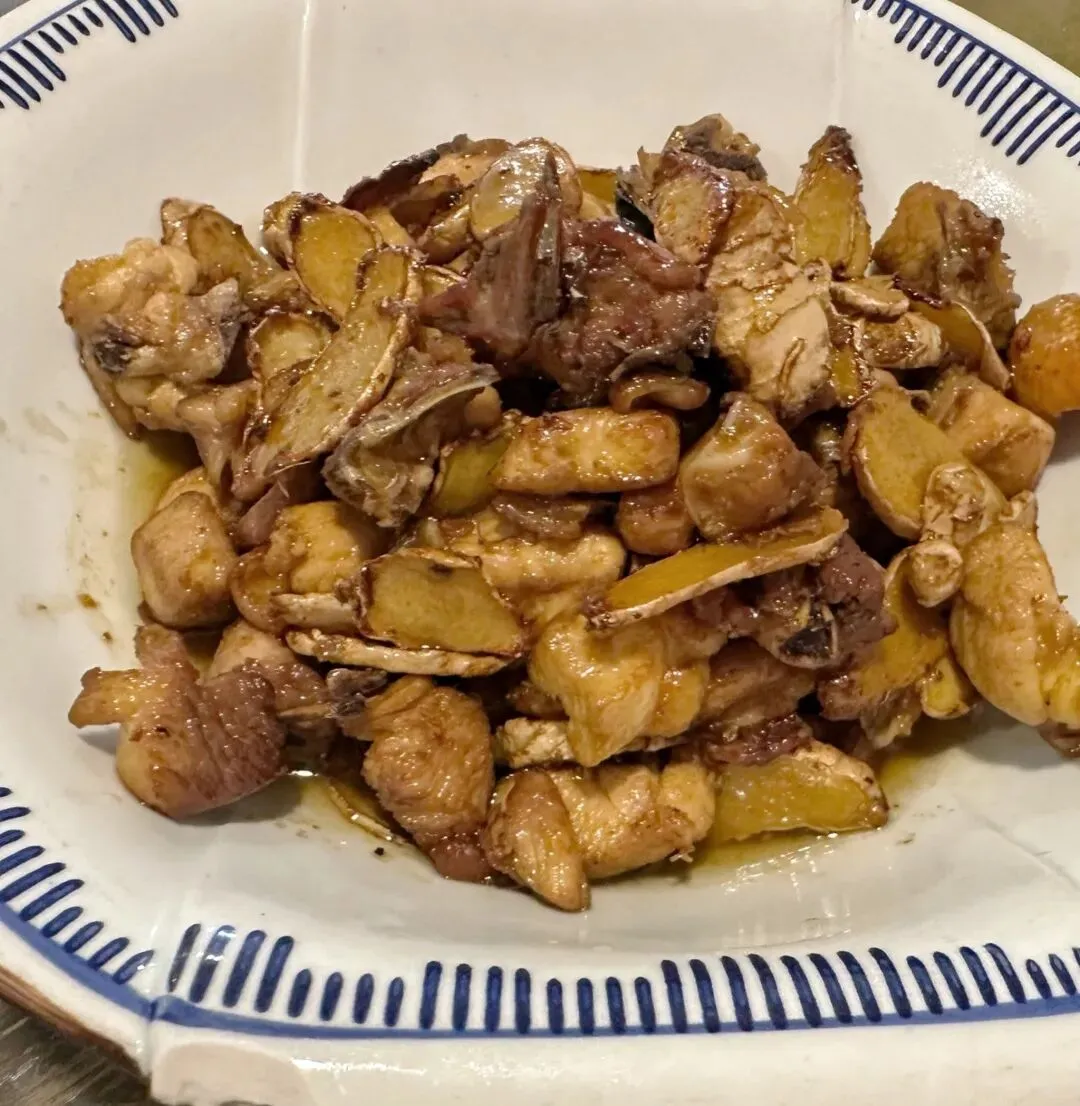 老姜炒鸡,看着就有食欲, 炸过的姜片和炒得干香肉嫩的鸡块,既不油腻又好吃,食材原本的香味被激发了出来,还有些嚼劲,很喜欢!