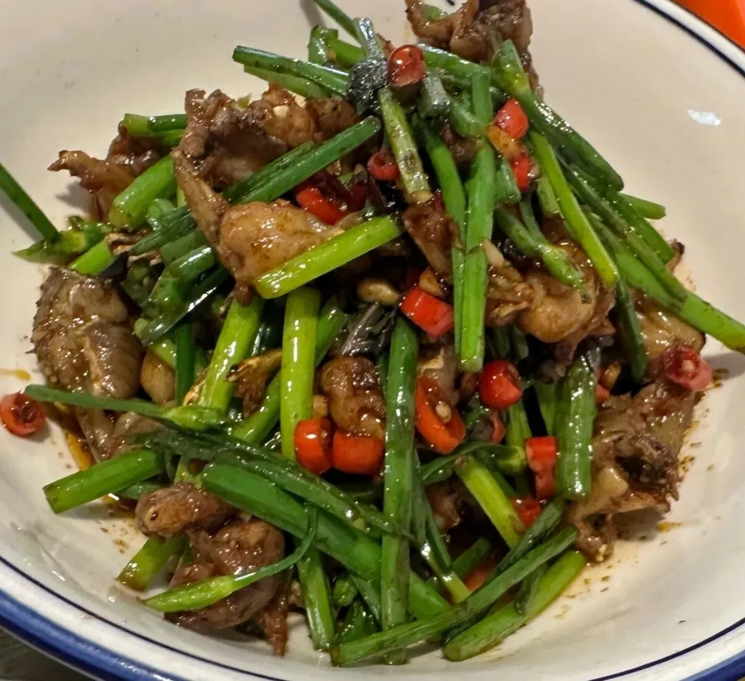 韭菜花炒田鸡,紫苏、细红辣椒、韭菜花一起爆炒田鸡,就是小时候家的味道,又香又下饭,又不是那种很重的口味。凉拌牛肉,首先牛肉选得好,是带点筋的牛腱子肉,切得薄薄一片,牛肉又嫩又入味,放剁辣椒、大蒜子、香菜凉拌,真是爱了!豆豉辣椒蒸鱼块,这个刨盐鱼味道也不错,个人感觉中规中矩的,不踩雷。他们家还有我喜欢的豆豉辣椒蒸排骨、醋炒蛋等等家常菜和口味菜,不是那种一口就惊艳的,但是就是感觉的挺不错的。