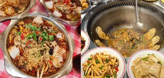 其中南岳素斋很值得慢慢吃。做法不复杂,先把香菇、冬笋、豆腐皮和面筋分别处理好,再用菌汤慢炖,让味道一点点进去。最后勾一点薄芡,不厚,刚能挂住鲜味。入口不是惊艳那种猛,而是越吃越顺。