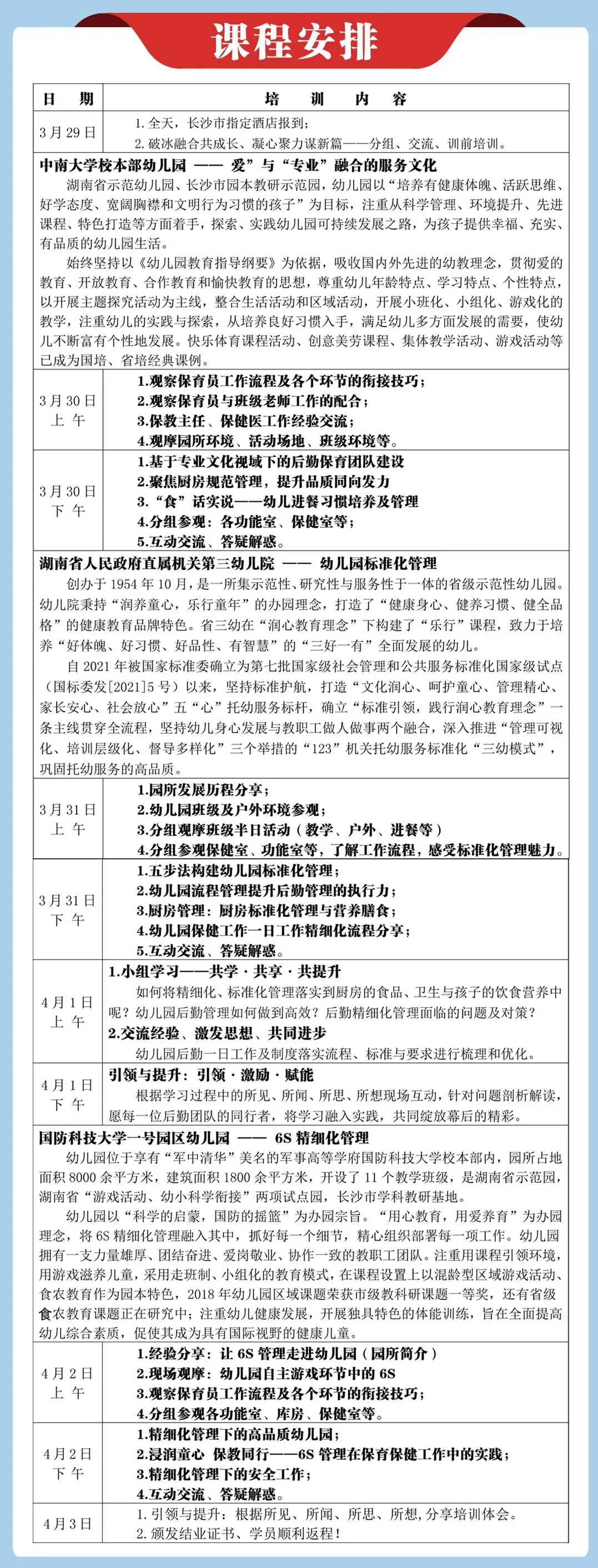 【开班--3月29日 长沙】后勤提质、保育赋能—幼儿园后勤与保育精细化管理实践暨保教质量优质园所观摩研修班