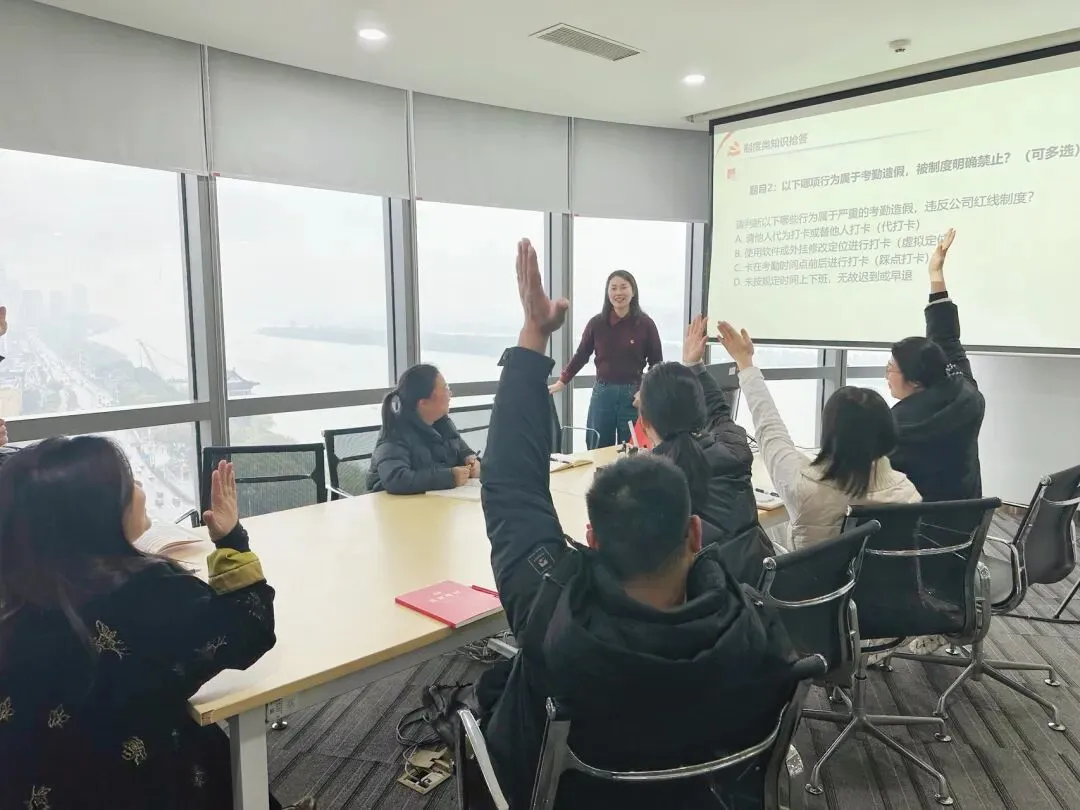 此次活动既是长沙隆熙党支部带头落实上级专项工作部署的具体实践,也是强化全员纪律意识、凝聚干事创业合力的重要举措。通过沉浸式学规明纪、互动式答题比拼、开放式讨论共识,进一步筑牢了全员作风建设的思想根基,在公司上下营造出学制度、守规矩、严纪律、勇担当的浓厚氛围。