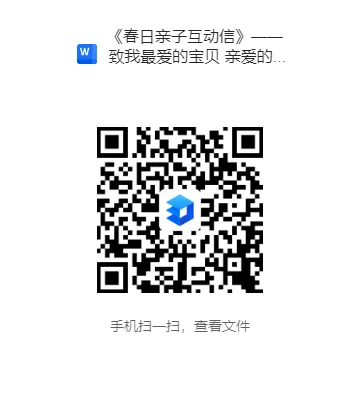 我们为您精心准备了《春日亲子互动信》—— 致我最爱的宝贝 / 亲爱的爸爸妈妈,扫码可下载。