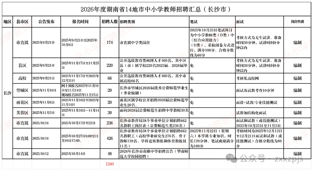 统计2026年度长沙市面向社会、高校毕业生已经发布公开招聘教师计1377名。