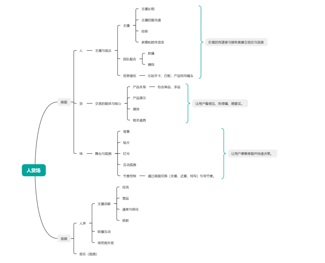 所以先优化场景(场景、主播),让流量进到直播间。再去调整话术,促成成交。卖点:不需要过多卖点,找到真正打动观众的卖点,一个即可,做深做精。每句话都应该对应一个动作(画面),在视觉、听觉上都触达到观众。也就是话术必须用相应的画面展现出来。不要有任何废话或者多余的画面。