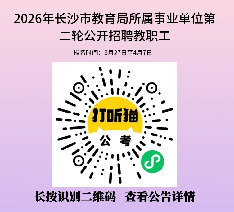 >【长沙招聘】2026年长沙市教育局所属事业单位第二轮公开招聘教职工!