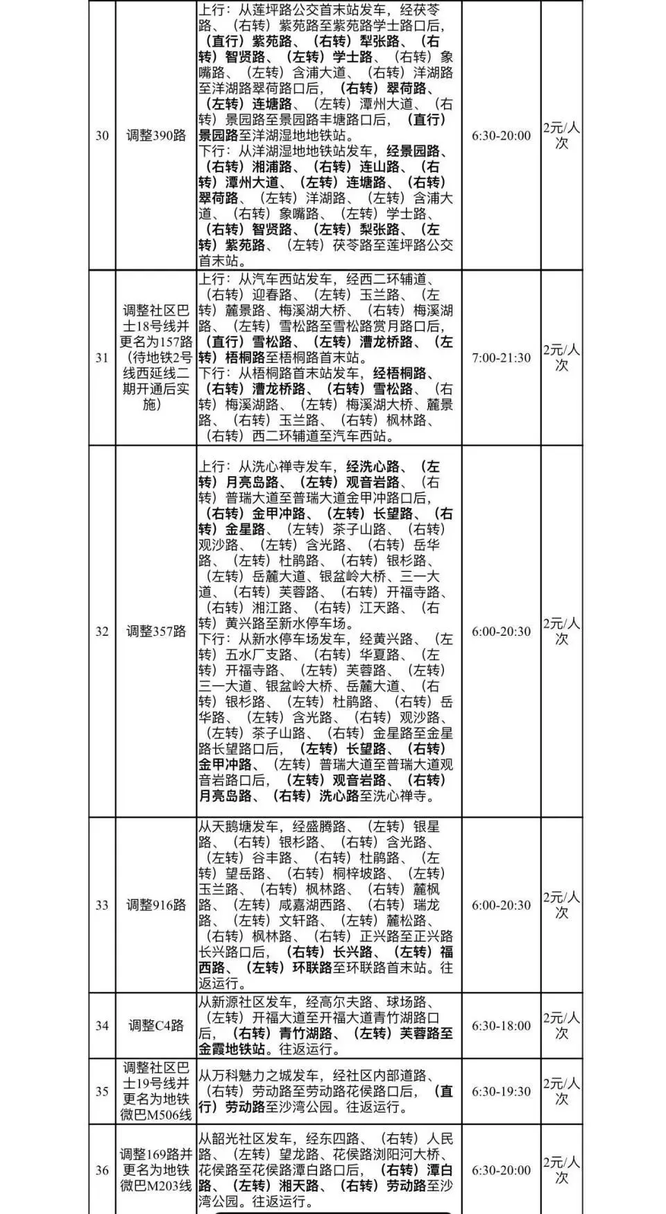 3月26日,长沙市交通运输局发布消息,为进一步优化长沙城区公交线网布局,推动公交与地铁融合发展,提高公交运营服务能力,长沙市交通运输局、长沙公交集团有限公司通过大数据分析、民意调查、座谈交流、意见征集等多种途径研究分析形成《长沙城区公交线网优化方案》,于2025年10月24日-10月30日、2025年11月28日-12月4日、2026年1月30日-2月5日进行三轮公示,广泛征求市民群众意见,并结合收集的意见对方案进一步修改完善,将于2026年3月28日整体实施。