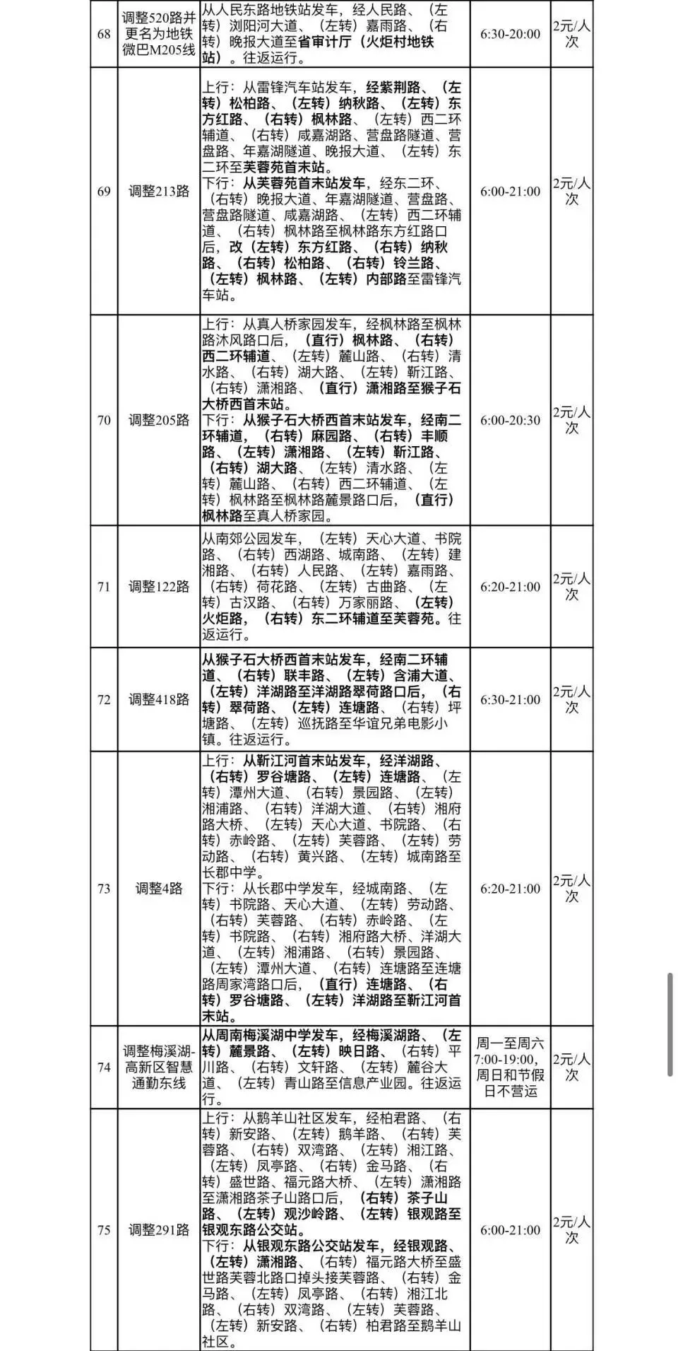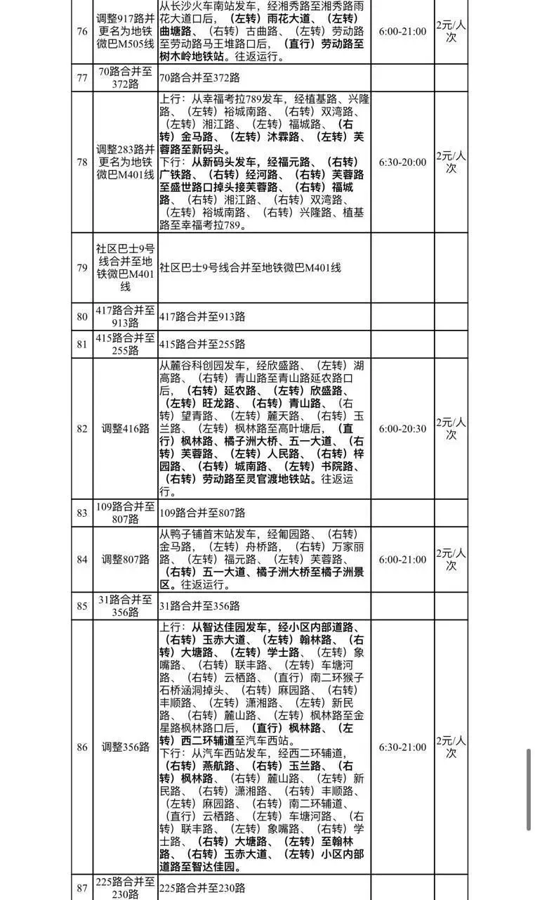 新增线路:结合市民出行需求和城市发展变化,新增线路25条(城区新增16条,承接原望城线路9条),主要填补服务空白,强化社区与轨道交通的接驳。