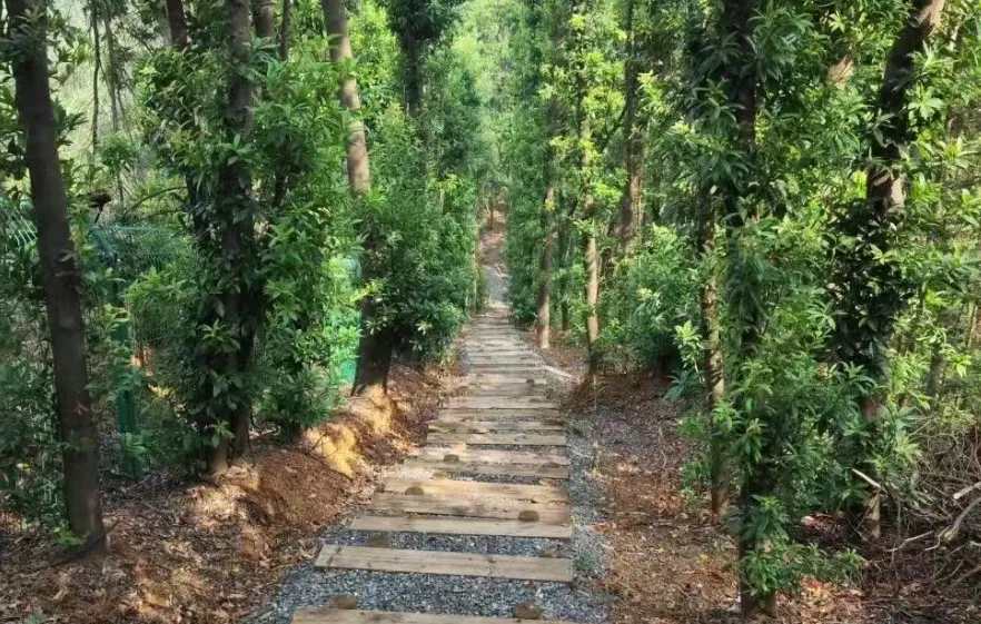 园内核心徒步路线为“云麓七里”步道,全长约3.5公里,由木栈道、碎石步道组成,坡度适中,沿途设有休息区和观景台,对老人、小孩友好,属于轻松级徒步路线。