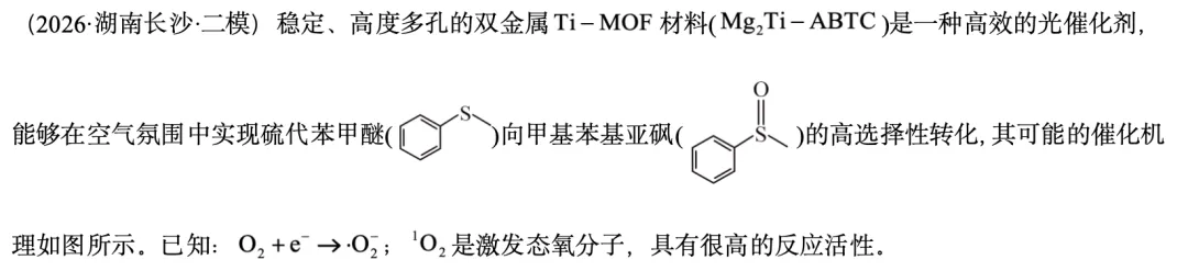 在化学的世界里,光不仅仅是照亮微观森林的手电筒,更是拨动分子能量琴弦的拨片。近日,2026年湖南长沙二模化学卷中出现了一道极具“学术范儿”的试题 ,将前沿的双金属MOF材料与光催化机理搬上了考场 。