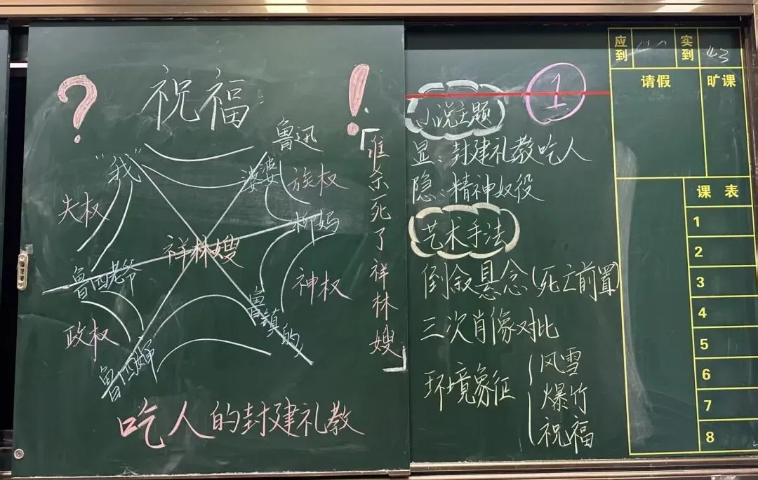 语文组备课组长王洪光老师点评道:“在金海谷郡老师们的板书中,我看到了‘静默的教导’。它不仅是知识的罗列,更是思维的脚手架。老师们对《祝福》的板书,像一张张人物命运的‘心电图’,将情感脉络可视化。这种设计超越了信息的传递,达到了思维训练的更高层次,这正是‘以生为本’理念最扎实的落地。”
