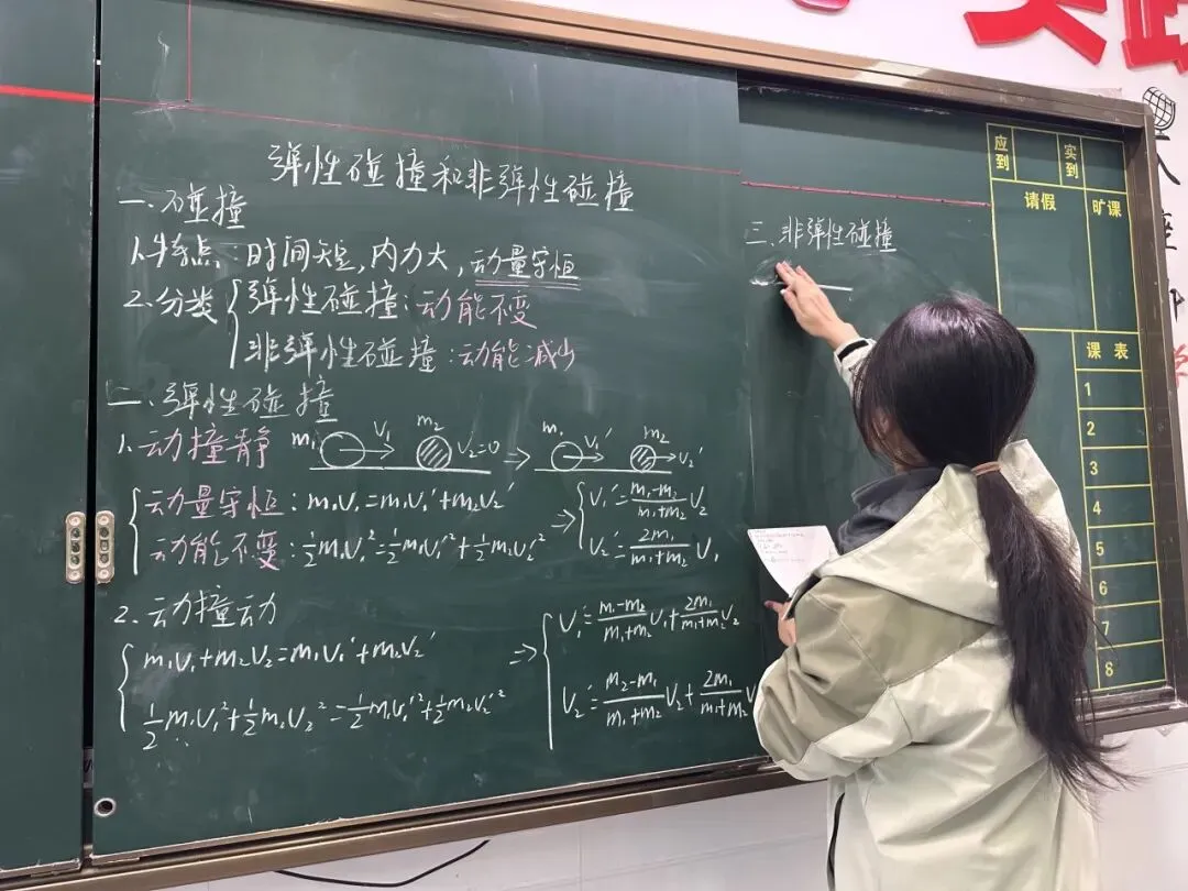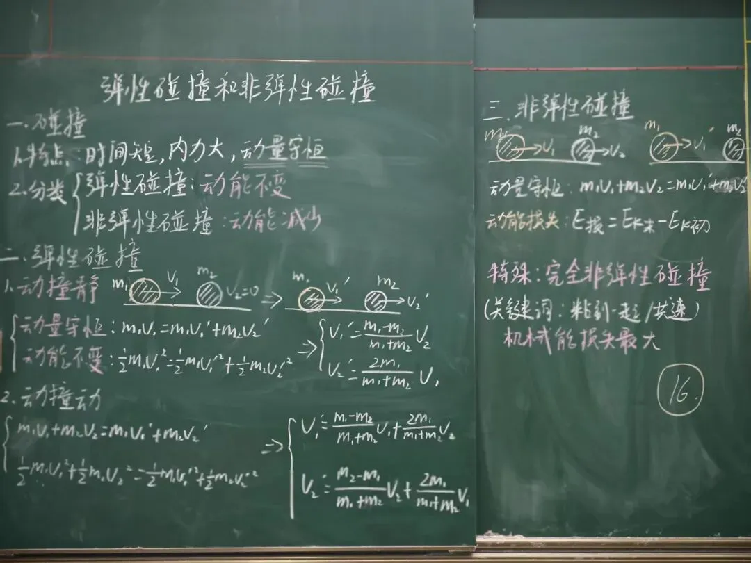 以简洁的图示勾勒碰撞瞬间,将动量与能量的抽象守恒,化为黑板上的诗意轨迹,于方寸之间演绎物质相互作用的力学之美。