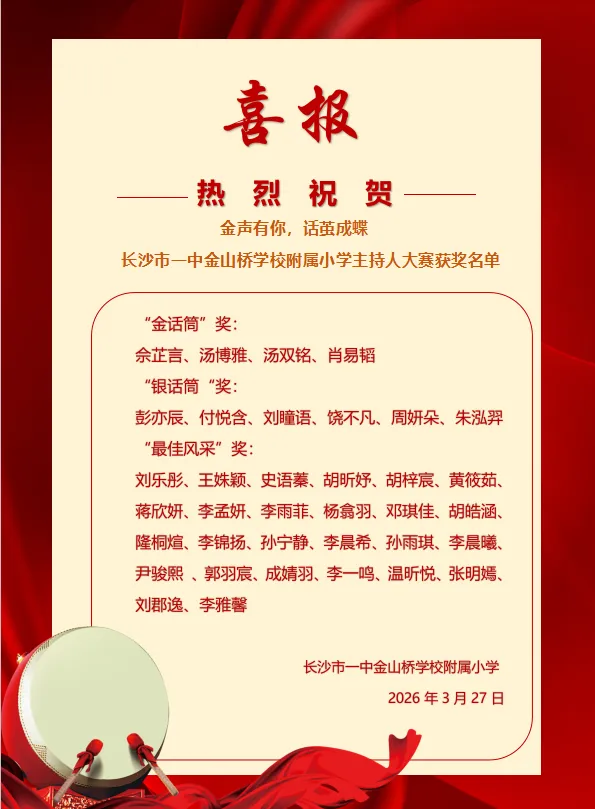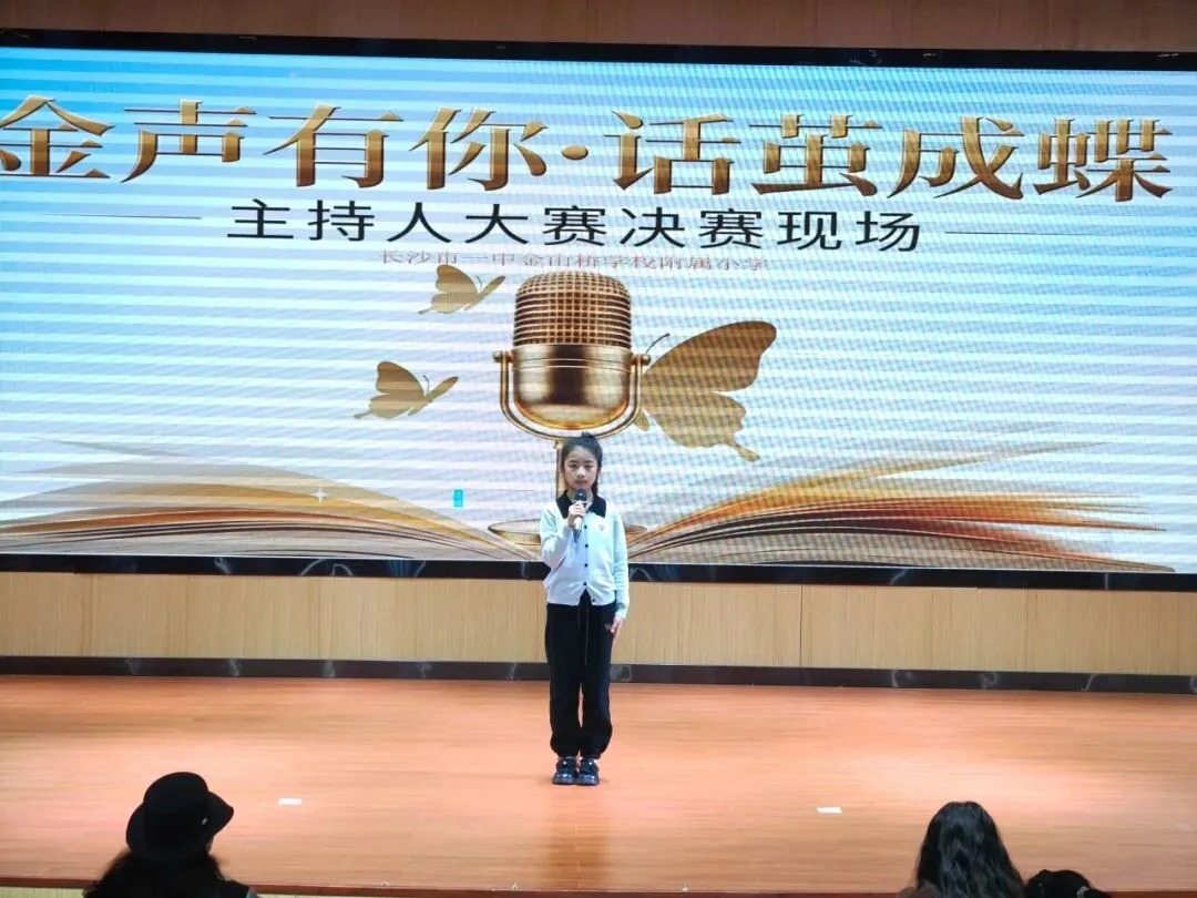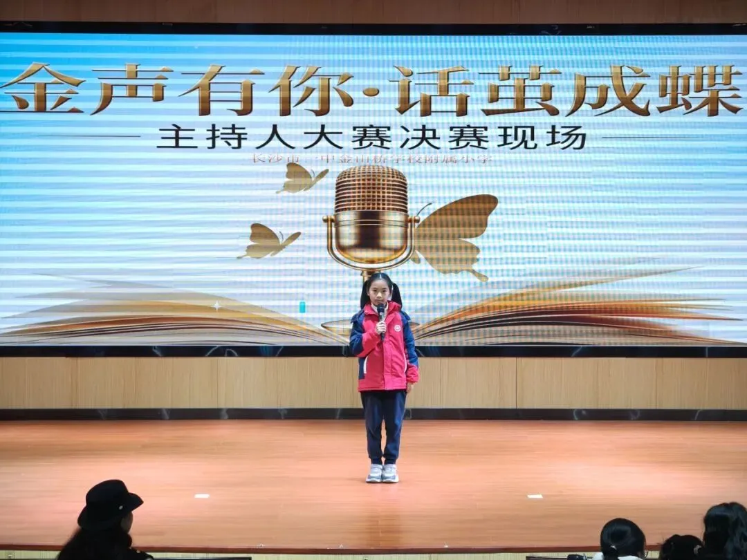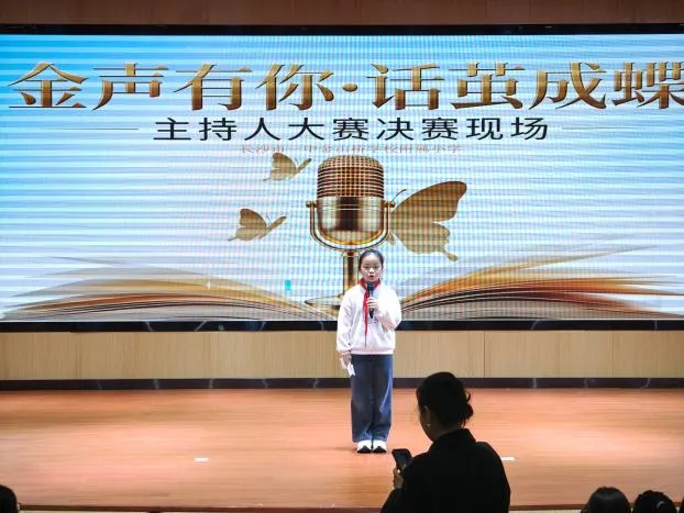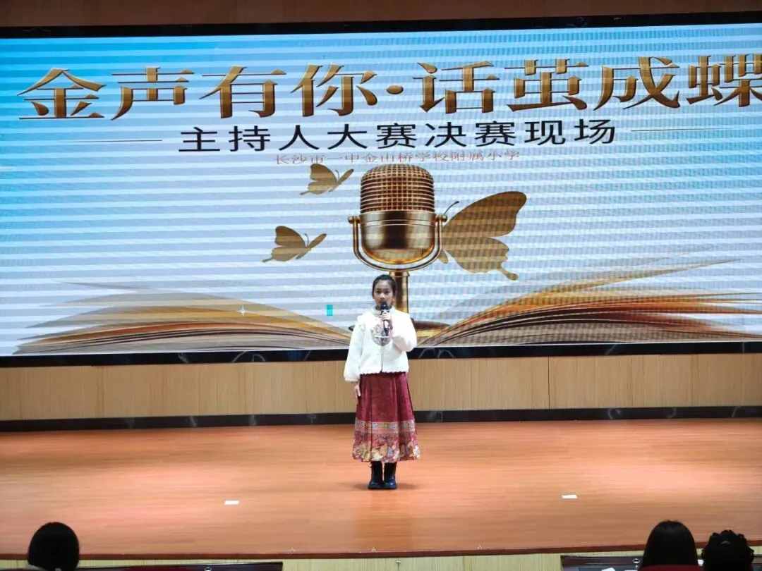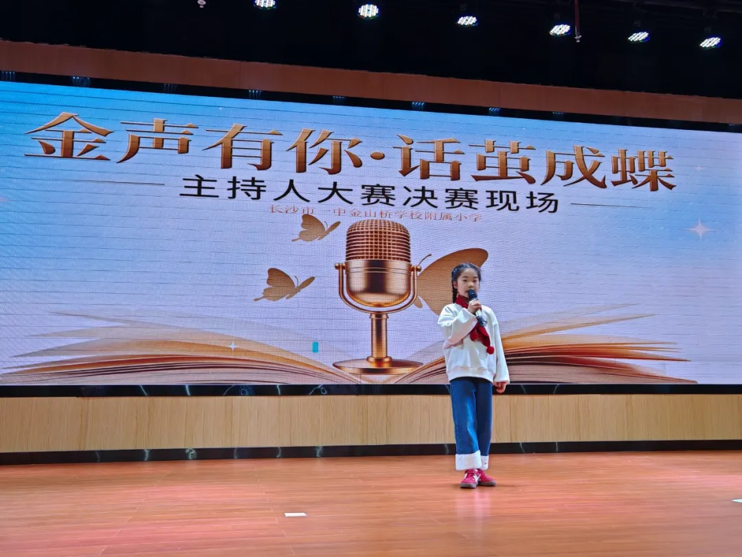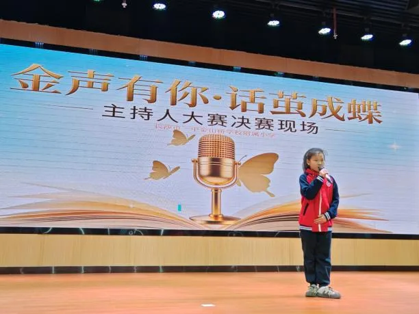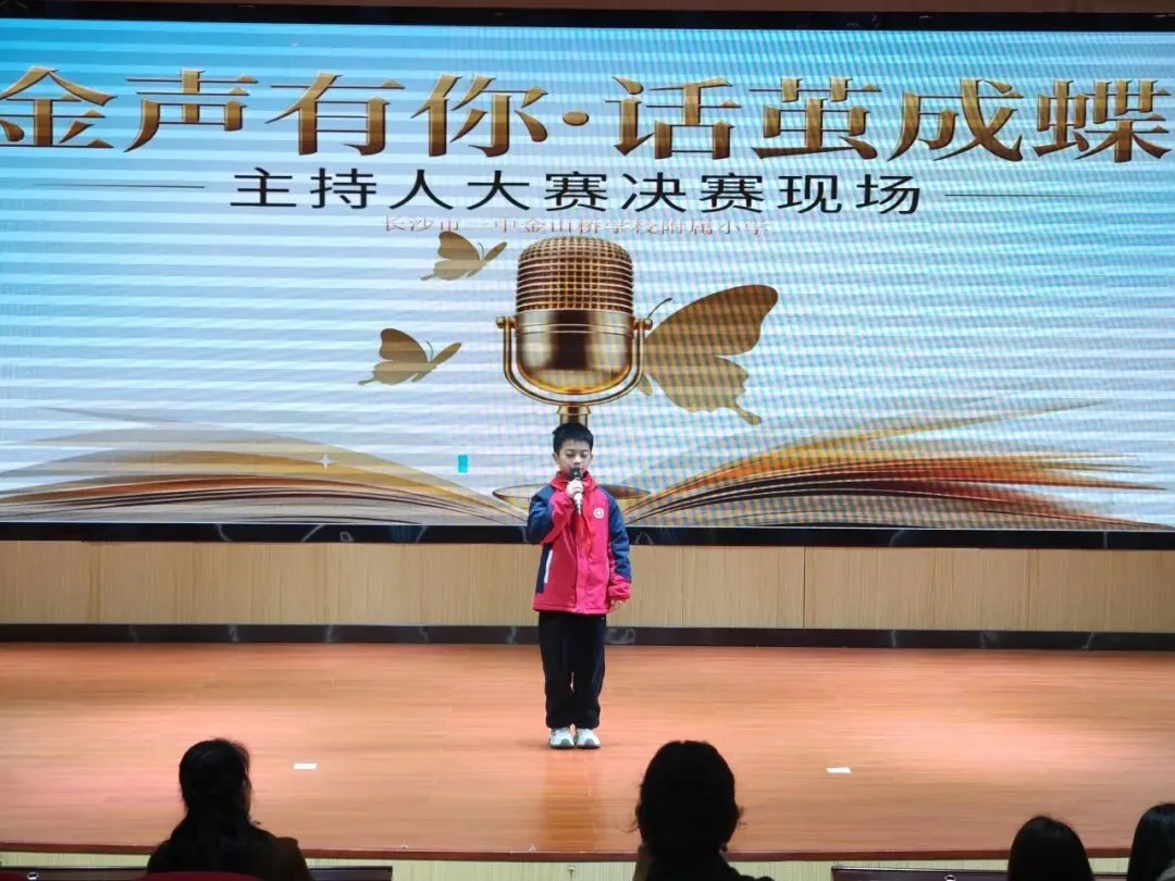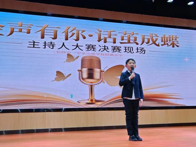 为丰富校园文化生活,挖掘学生语言表达潜力,培养自信从容的少年风采,长沙市一中金山桥学校附属小学“金声有你·话茧成蝶”主持人大赛决赛,在校园内盛大举行。本次大赛紧扣雷锋精神、健康第一、AI智能三大核心主题,历经层层选拔,优秀小主持人们站上决赛舞台,用清脆嗓音、真挚表达,诉说少年感悟,绽放主持光芒,带来一场兼具思想与风采的语言盛宴。