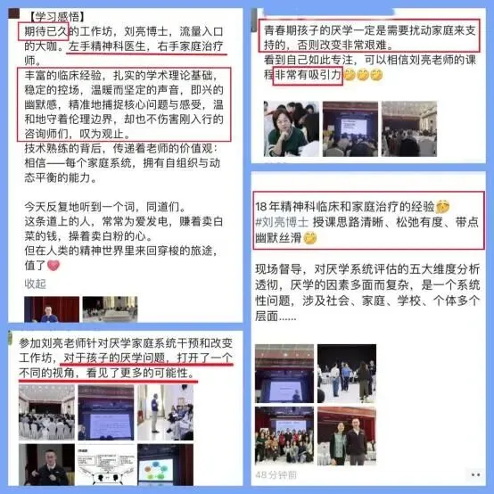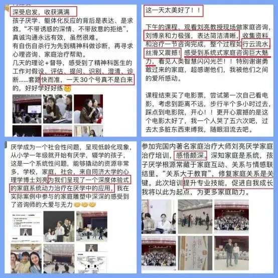 课程与实践深度结合,通过逐字稿督导、现场访谈示范、家庭治疗访谈练习以及手把手辅导,对学员的每一次对话进行“显微镜级”复盘,现场“解剖”对话,淬炼技能。