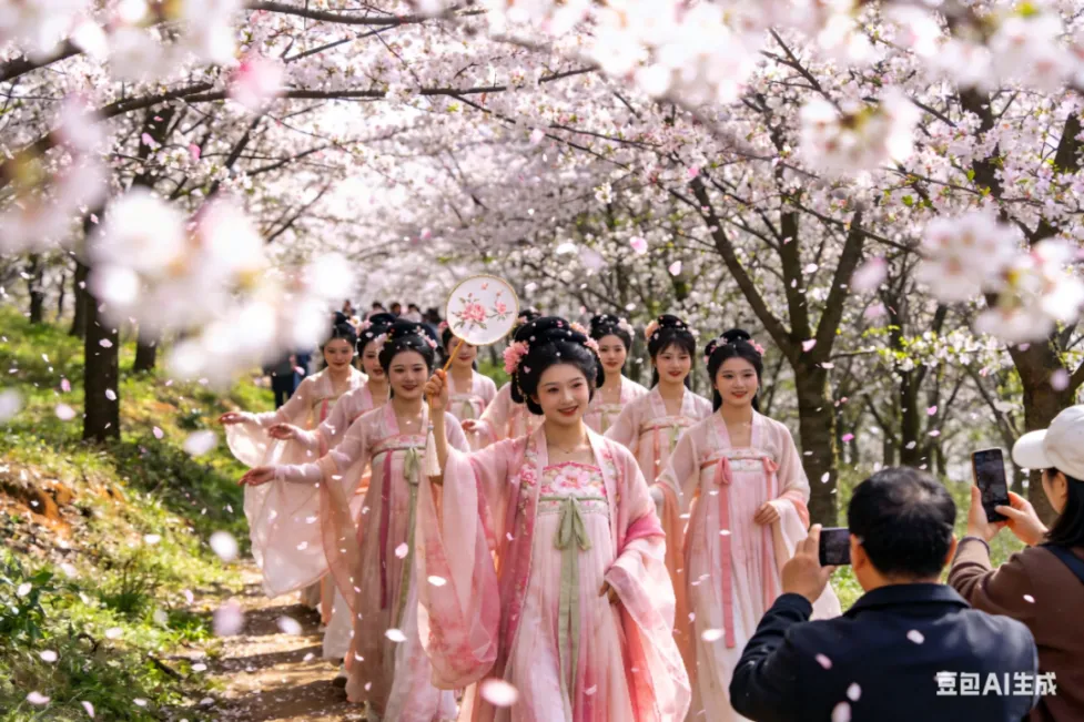 长沙铜官窑国风乐园花朝游园节以“国色芳华大巡游、游园寻芳戏花神、春日焰火耀花朝”等八大主题为核心,将樱花、桃花等花海景观与千年古建交相辉映,勾勒出独具韵味的春日画卷。