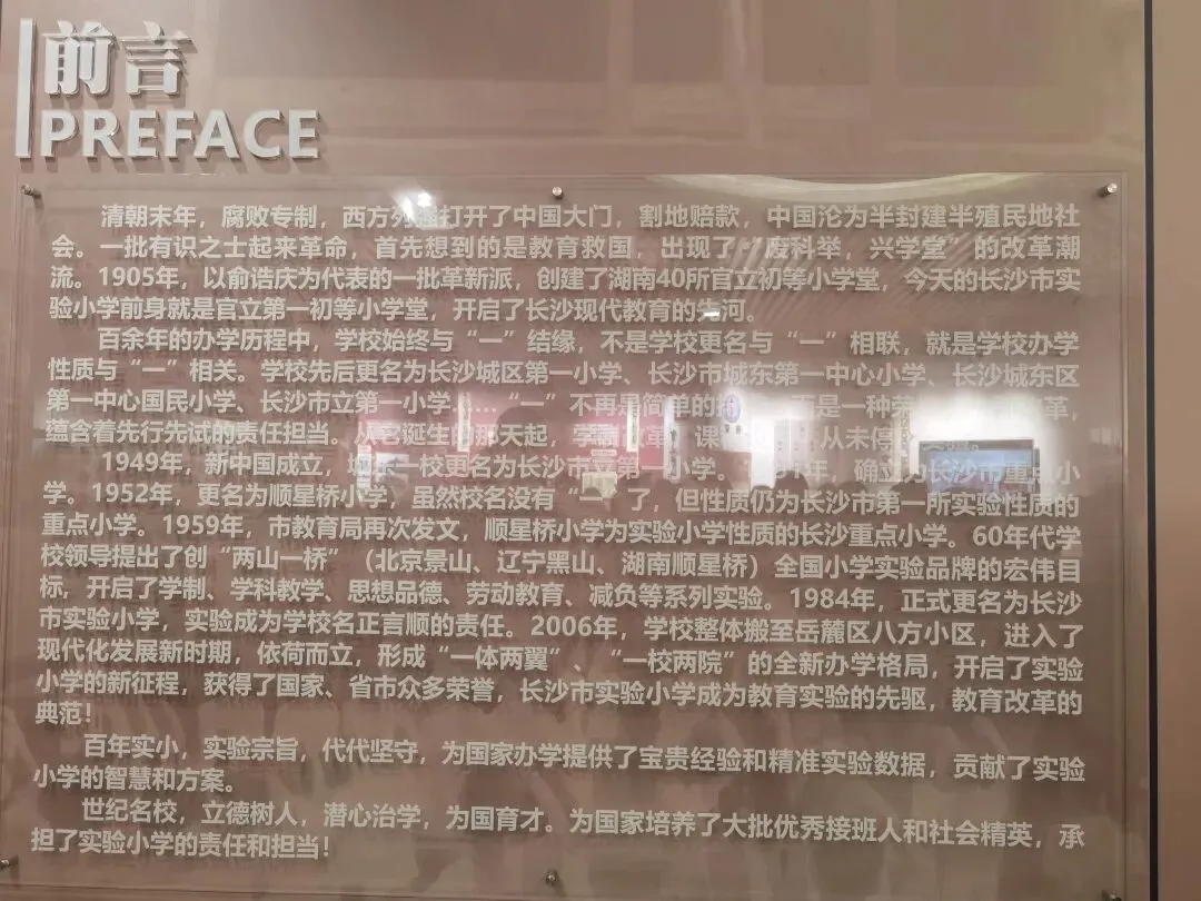 2026年3月18日,我们重庆市“基础教育名师培养对象培训班”的50位学员在长沙教育学院张教授的带领下来到了有着120多年办学经历的长沙市实验小学考察学习。大家先参观了该校的校史陈列室。