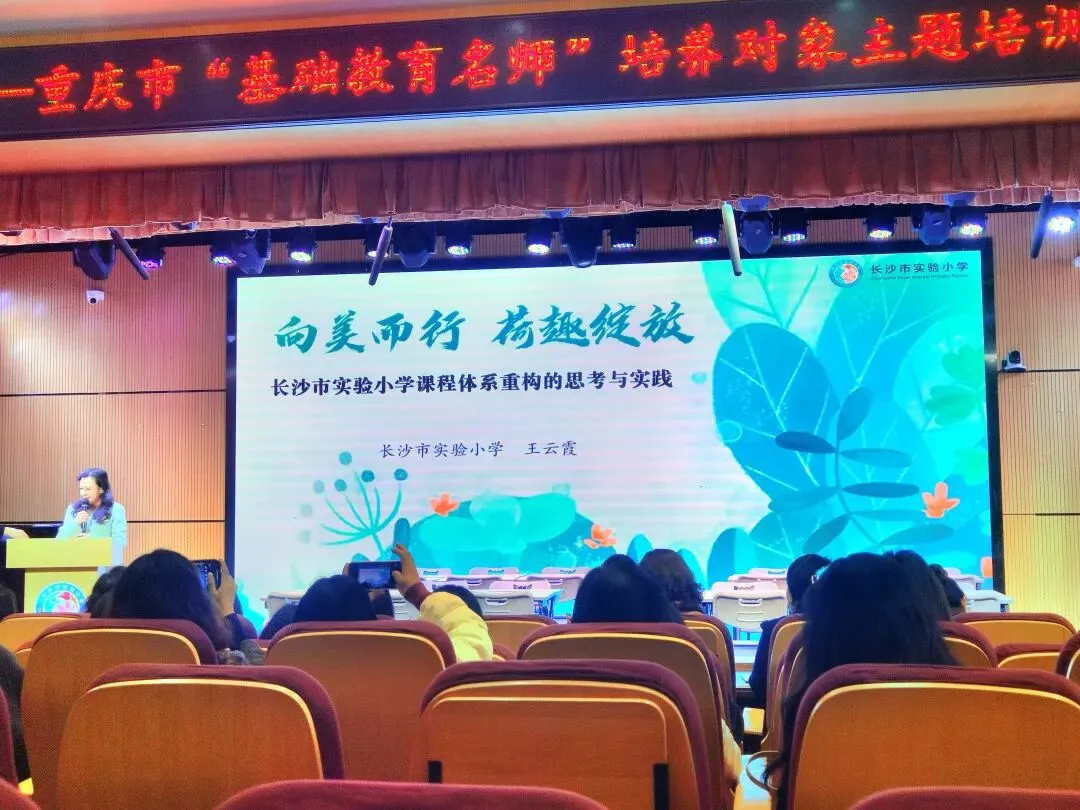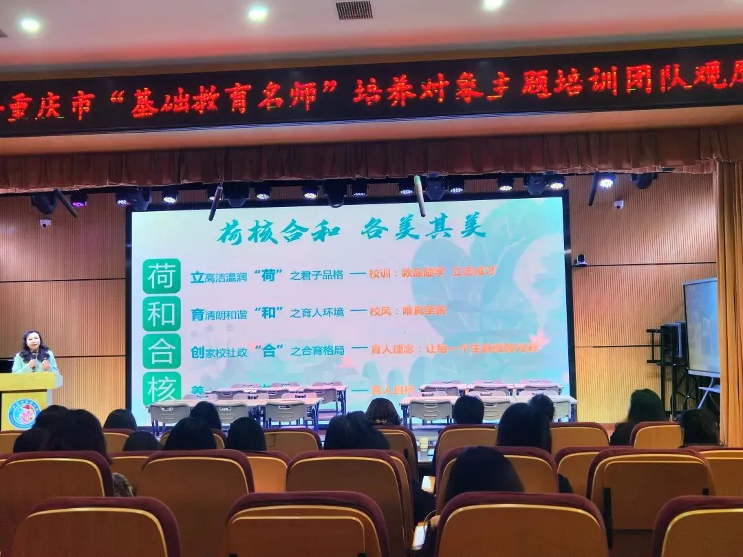 随后,又来到了多功能报告厅,聆听了该校王云霞书记作的《向美而行,荷趣绽放》的报告。