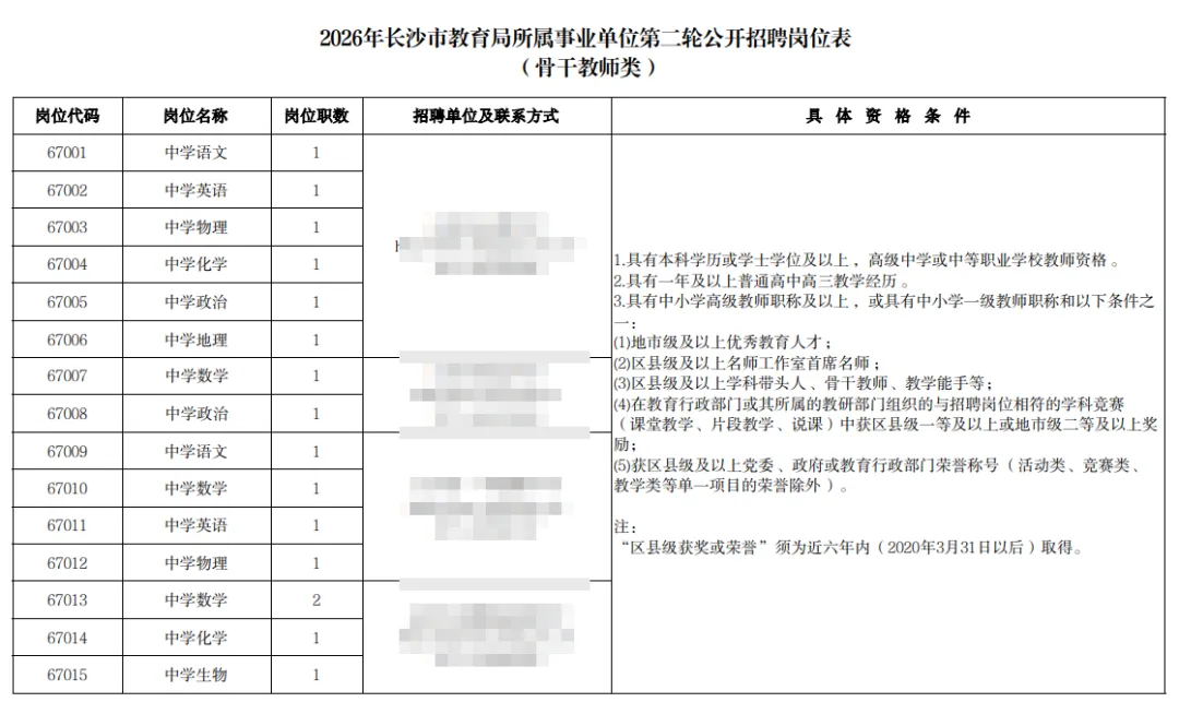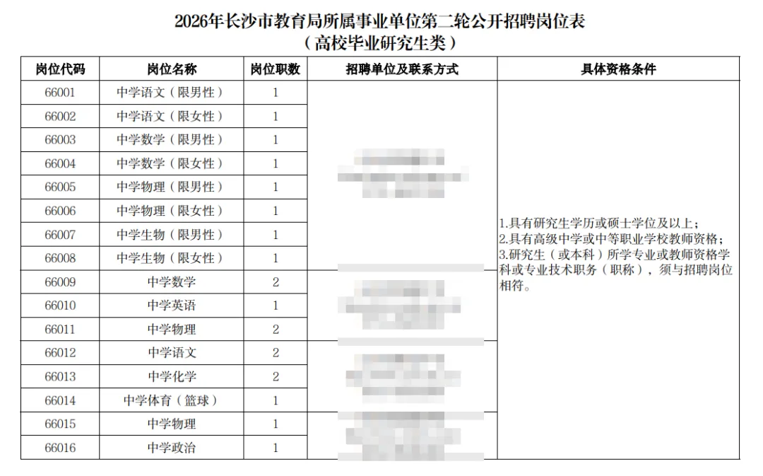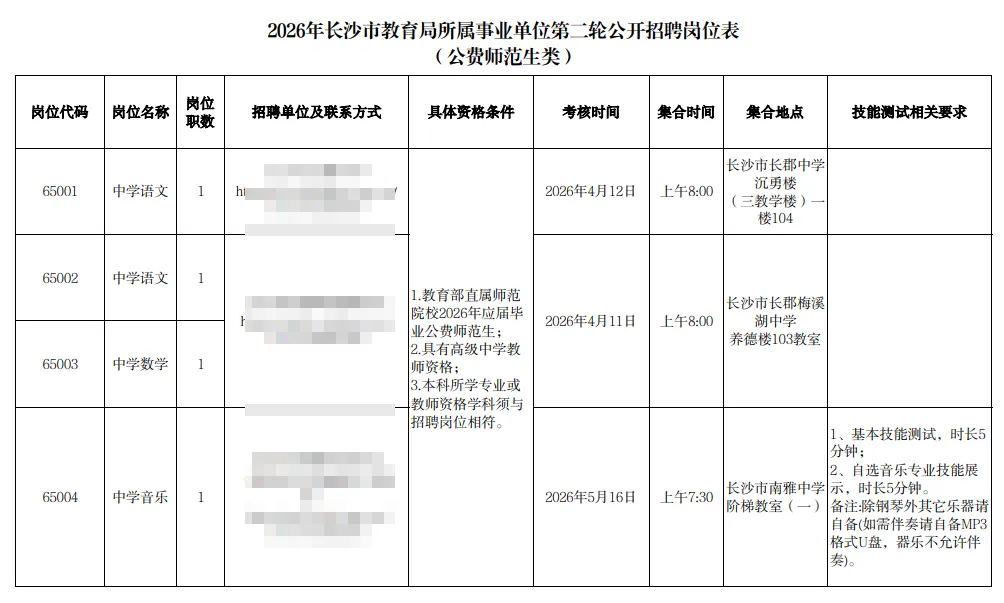 根据《事业单位人事管理条例》等有关规定,经研究决定,长沙市人力资源和社会保障局会同长沙市教育局对其所属29个事业单位开展2026年第二轮教职工公开招聘工作。本次招聘计划为226名,招聘对象为公费师范生、高校毕业研究生、骨干教师、学科竞赛教练和体育教练员。编制使用计划经中共长沙市委机构编制委员会办公室批准。现将有关事项公告如下: