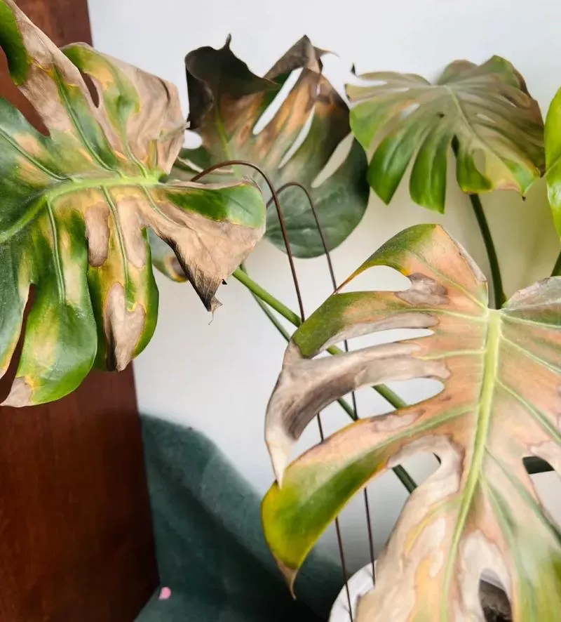 为什么对了,因为这盆死掉的龟背竹,反而把植物本来的样子呈现出来了,那些蜷曲的叶片、干裂的纹理、不规则的褐色斑块,这些东西在活着的时候你看不到,或者说你不会注意,但它死了之后,这些细节全暴露出来了,它不再是一盆"家居装饰",而是回到了"植物"这个身份本身,带着时间的痕迹、生命的轨迹,甚至还有点残缺的诗意。