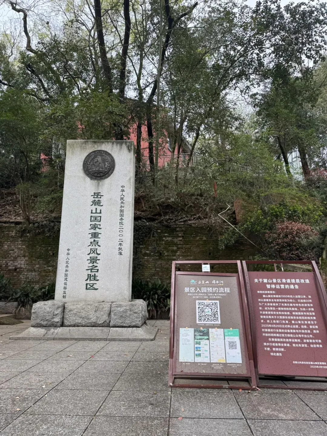 到达岳麓山的南门后扫身份证进去,可游览岳麓书院、爱晚亭、登山赏春。