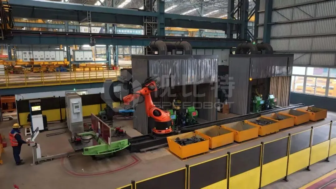免示教智能焊接产线:搭载自研SpeedWeld焊接控制软件与激光视觉传感器,可实时识别船体分段的复杂曲线焊缝,自动规划路径,实现“免示教、免编程”,适配船舶制造厚板多层多道焊的工艺要求,高效完成复杂曲线焊缝焊接,大幅提升焊接质效。