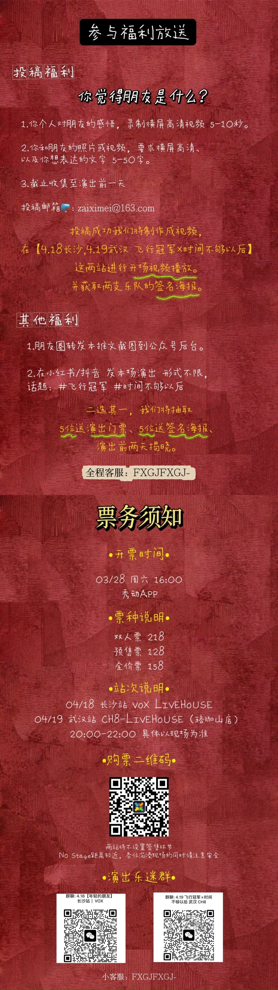 >3月28日16:00长沙站开票|年轻的朋友【双舞台No Stage】飞行冠军*时间不够以后