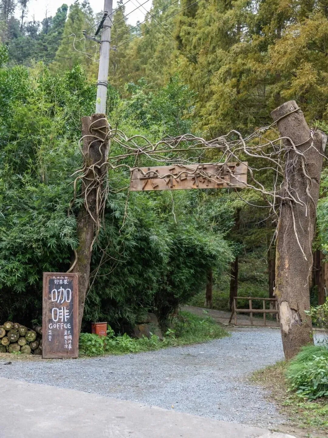 木质的门头被绿植包围