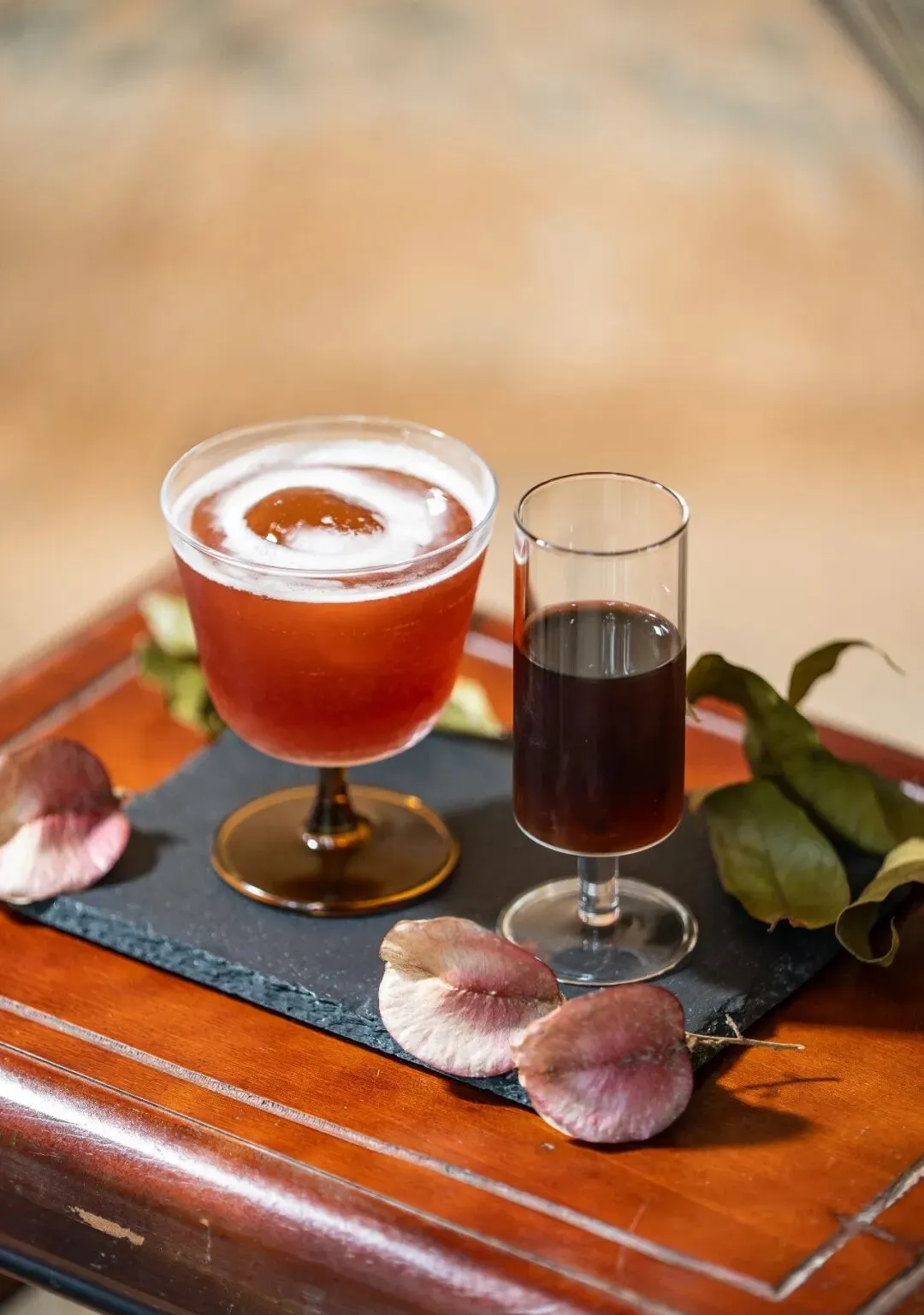 阳光透过树叶洒在桌面上