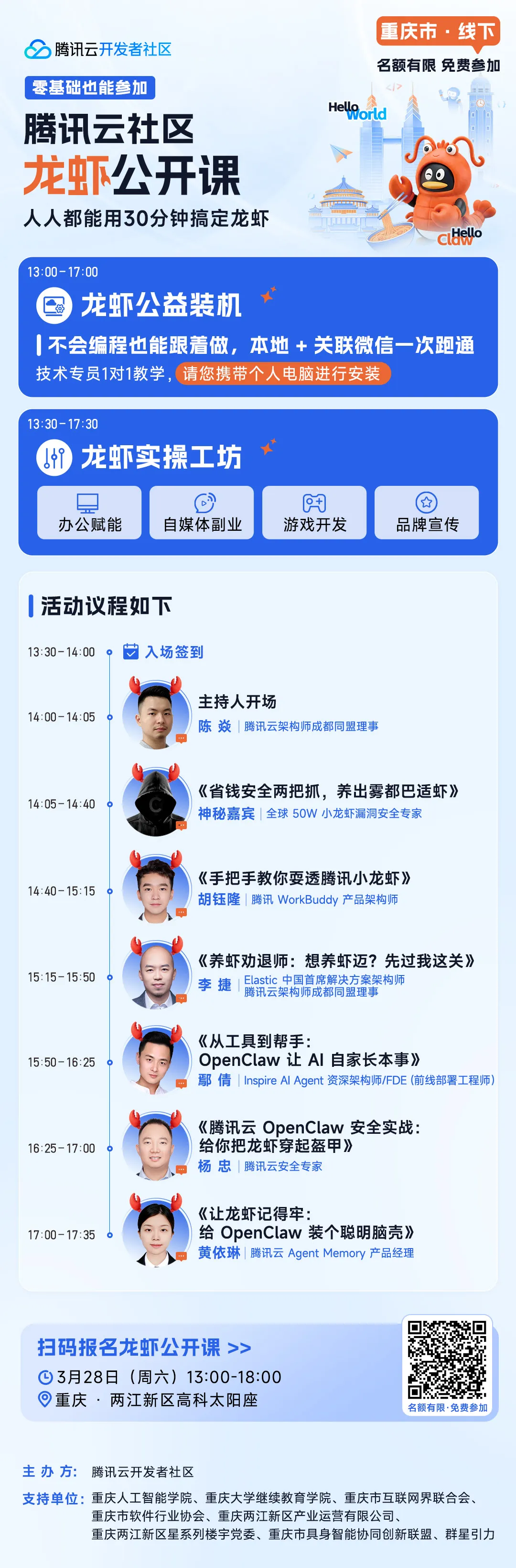 将邀请人工智能产业一线的技术专家现场拆解OpenClaw智能体,用通俗易懂的语言和实际案例讲明技术原理,让零基础「小白」也能轻松了解、安全使用。