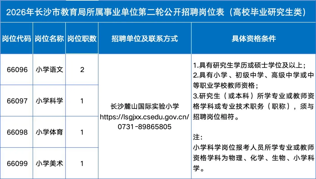 查看《2026年长沙市教育局所属事业单位第二轮公开招聘教职工公告》及相关附件