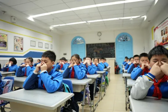 最有意思的是护眼方式。学校把爱眼知识编成主题曲,孩子们天天唱,护眼要点不知不觉就记住了。还设计了望远趣味练习,打破传统宣教的枯燥,让护眼变成游戏。