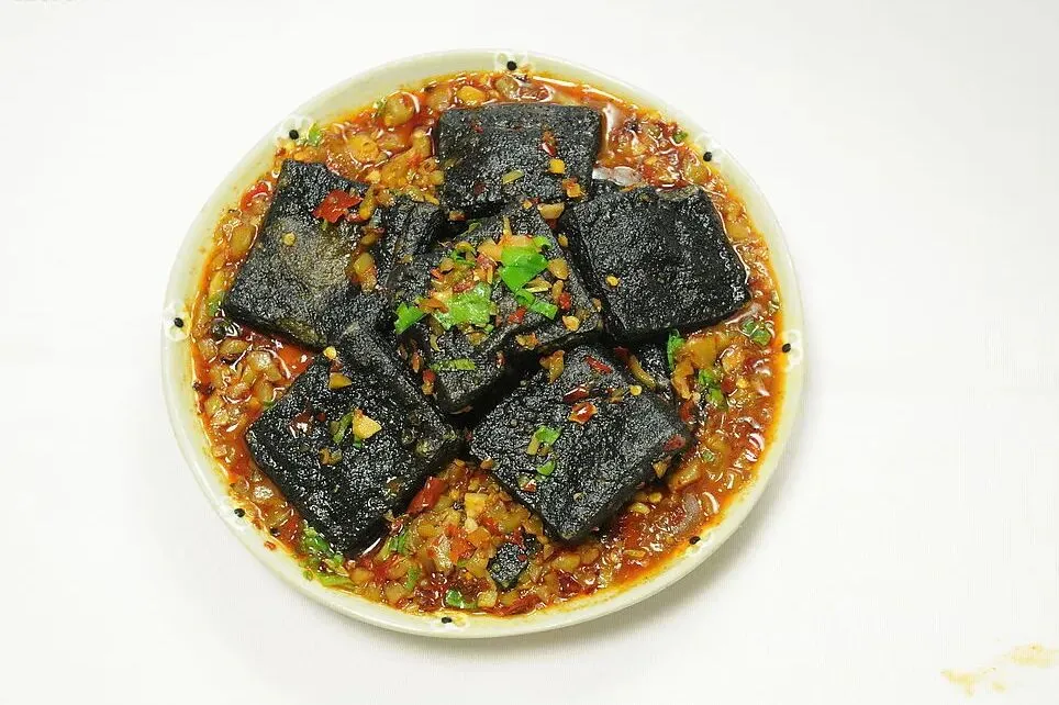 “八大小吃”中最有名的当数油炸臭豆腐,距今已有110多年历史,其以白豆腐为主料,经特制卤水浸色渗味,形状方正、外表墨黑焦脆、内心洁白细嫩。“火宫殿臭豆腐制作技艺”已被列入国家级非遗代表性项目名录。