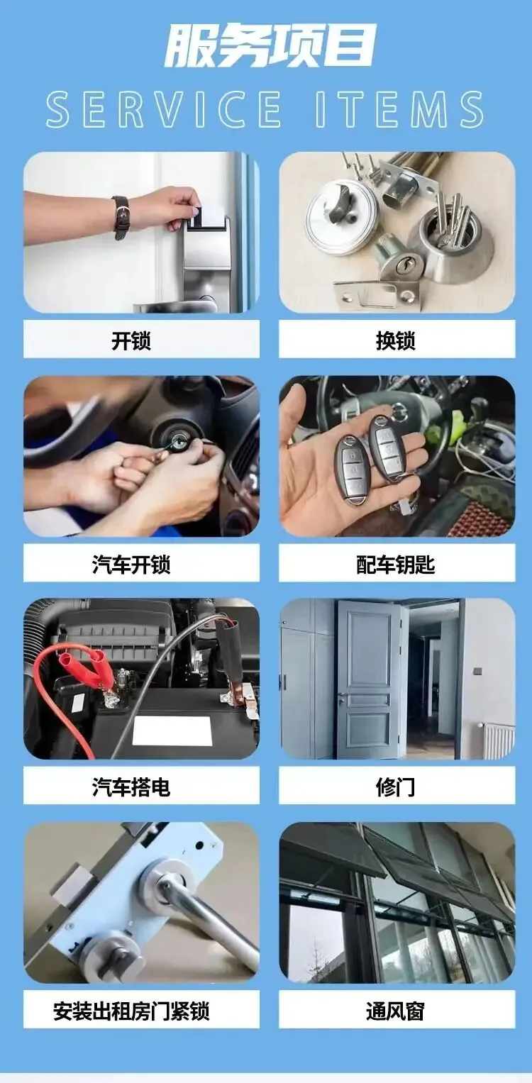 🛠️服务内容:✔️防盗门开锁、换锁、修锁✔️智能指纹锁安装与维修升级✔️汽车开锁、配钥匙、遥控匹配✔️保险柜开锁、密码重置✔️门锁升级改造、防盗加固✔️断钥匙取出、锁芯更换✔️家庭、商铺、写字楼锁具综合服务