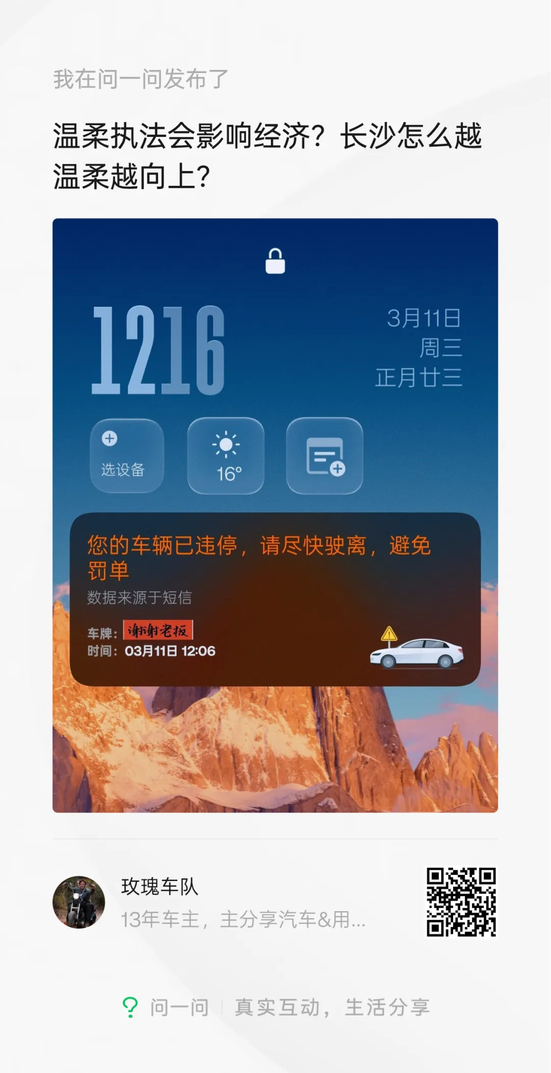 很多车友体验过,当然包括我,个人觉得非常有温度,我也写过一篇问一问的帖子感谢过~(微信居然不支持问一问的链接,神奇),调侃说我欠长沙交管局好多个200块🤣